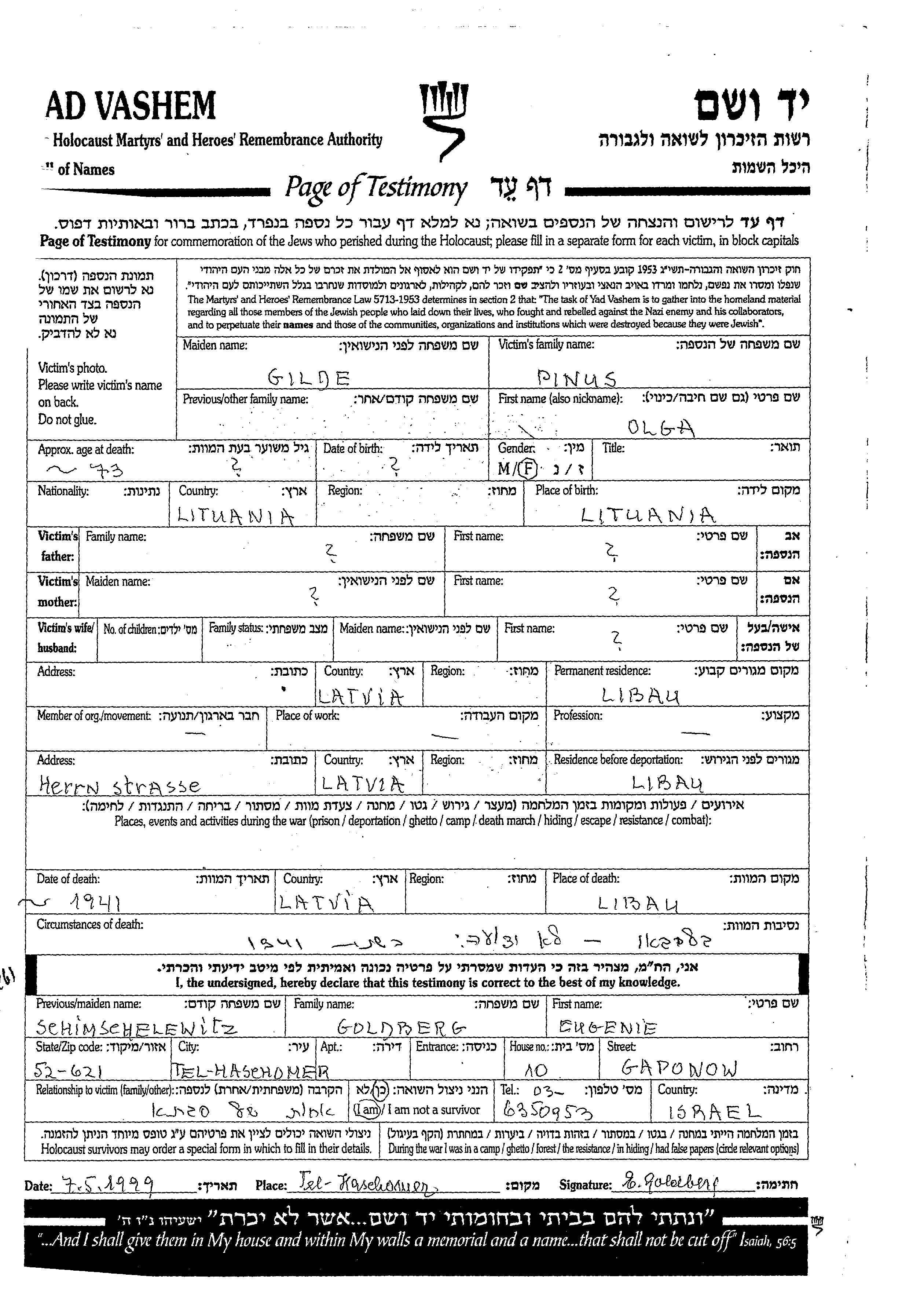 Yad Vashem - Pages of Testimony Names Memorial Collection