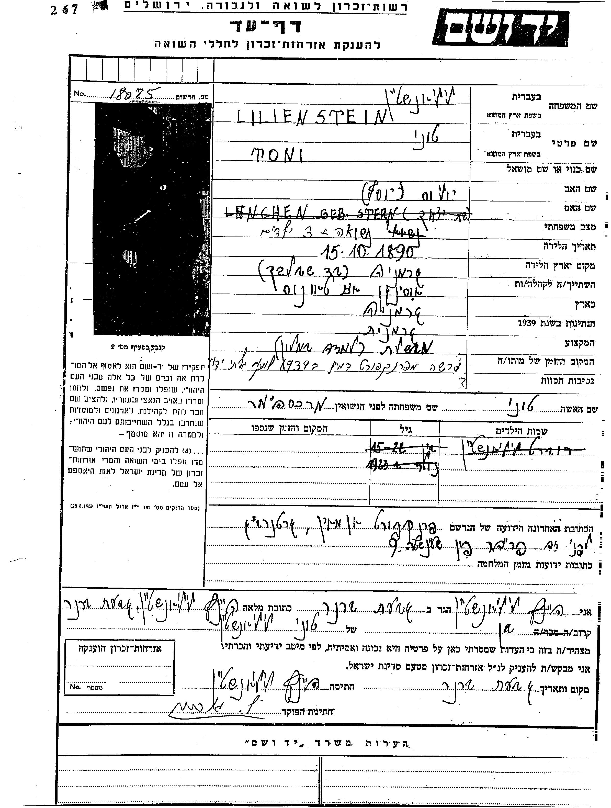 Chana Lilienstern est née à Pologne. Elle était Mariée à Meir. Avant la seconde guerre mondiale elle vivait à Lodz, Pologne.