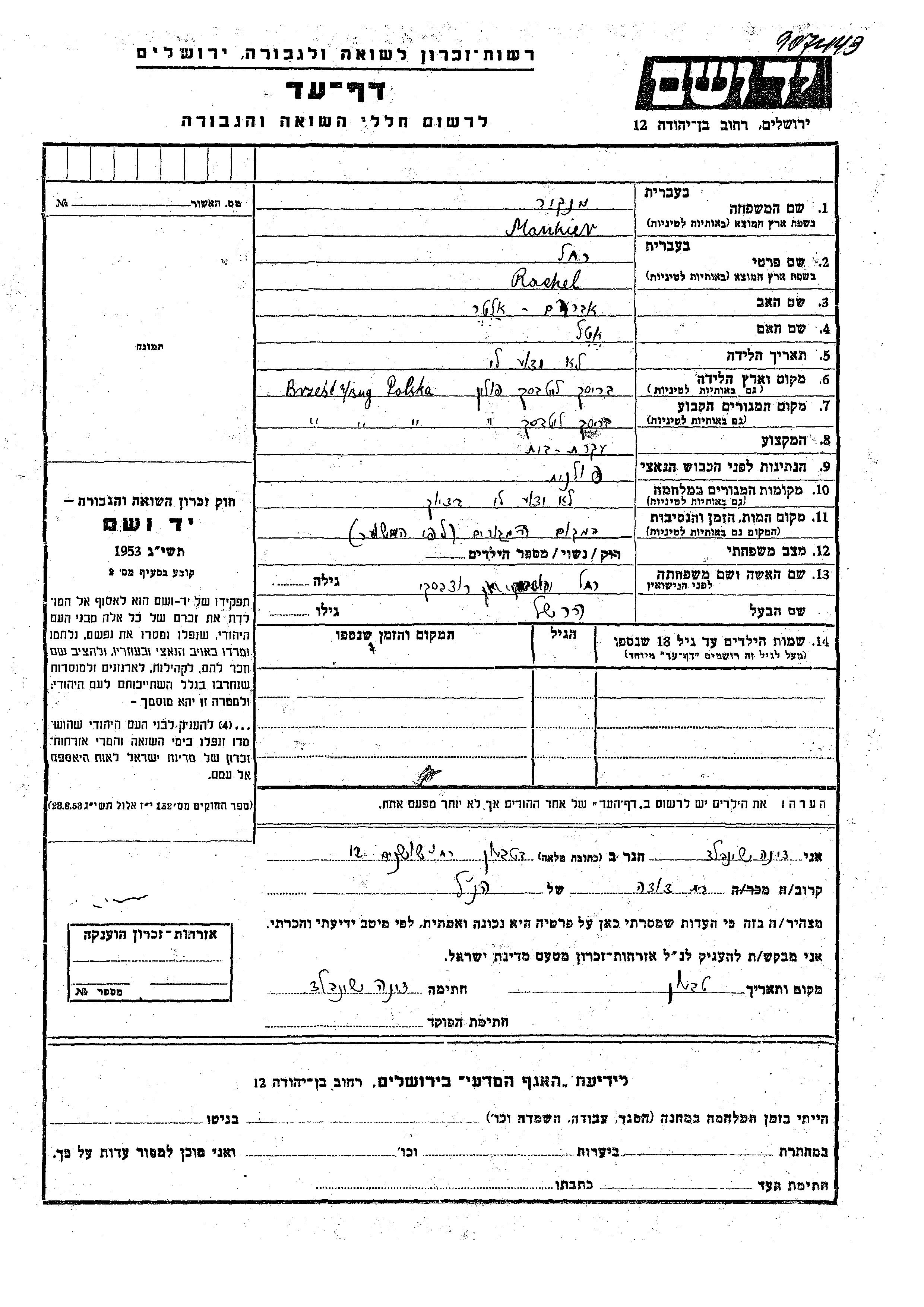 Mankier Rachel Brześć nad Bugiem, Pologne Feuille de témoignage