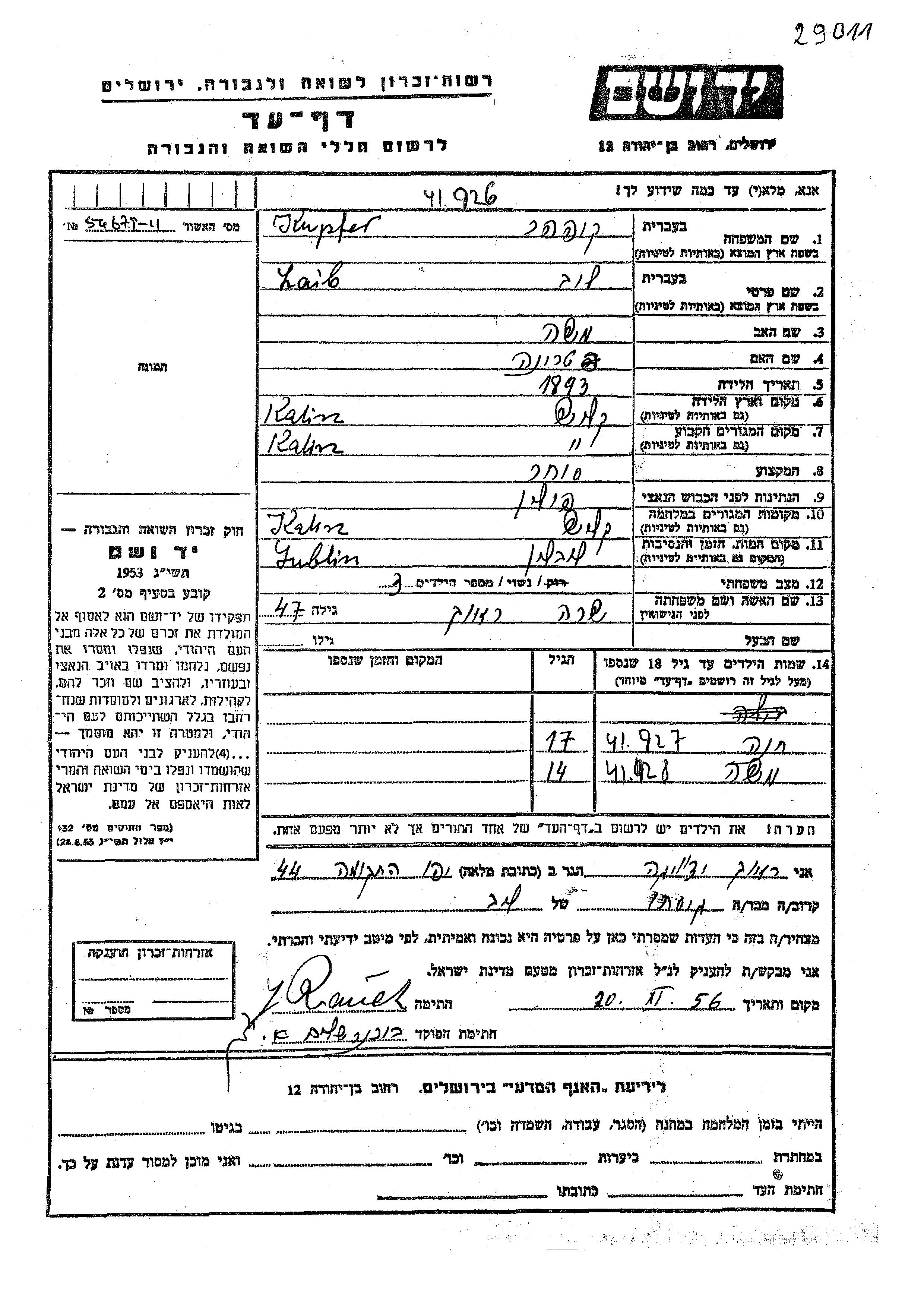 Yad Vashem - Pages of Testimony Names Memorial Collection