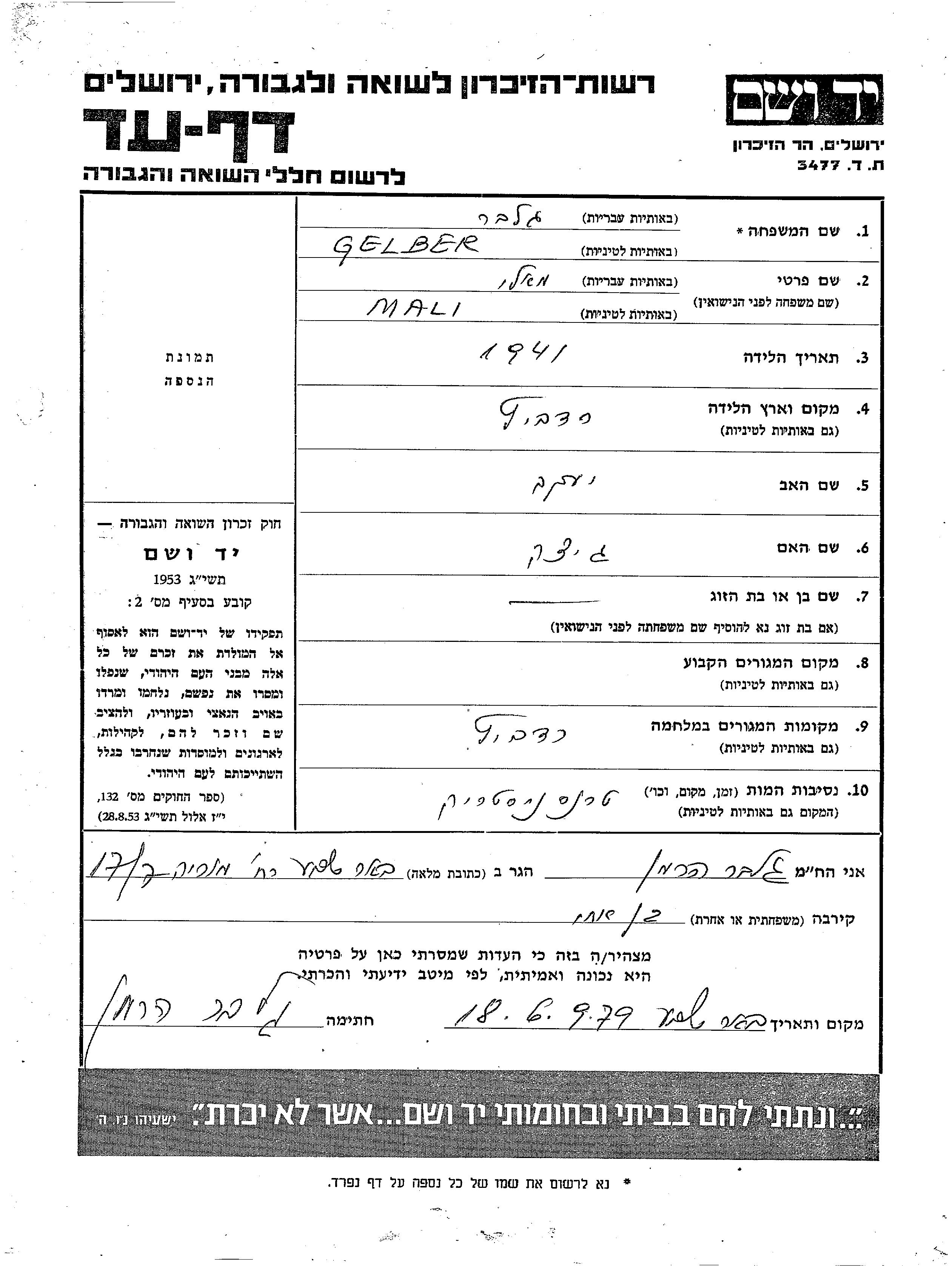 Yad Vashem - Pages of Testimony Names Memorial Collection
