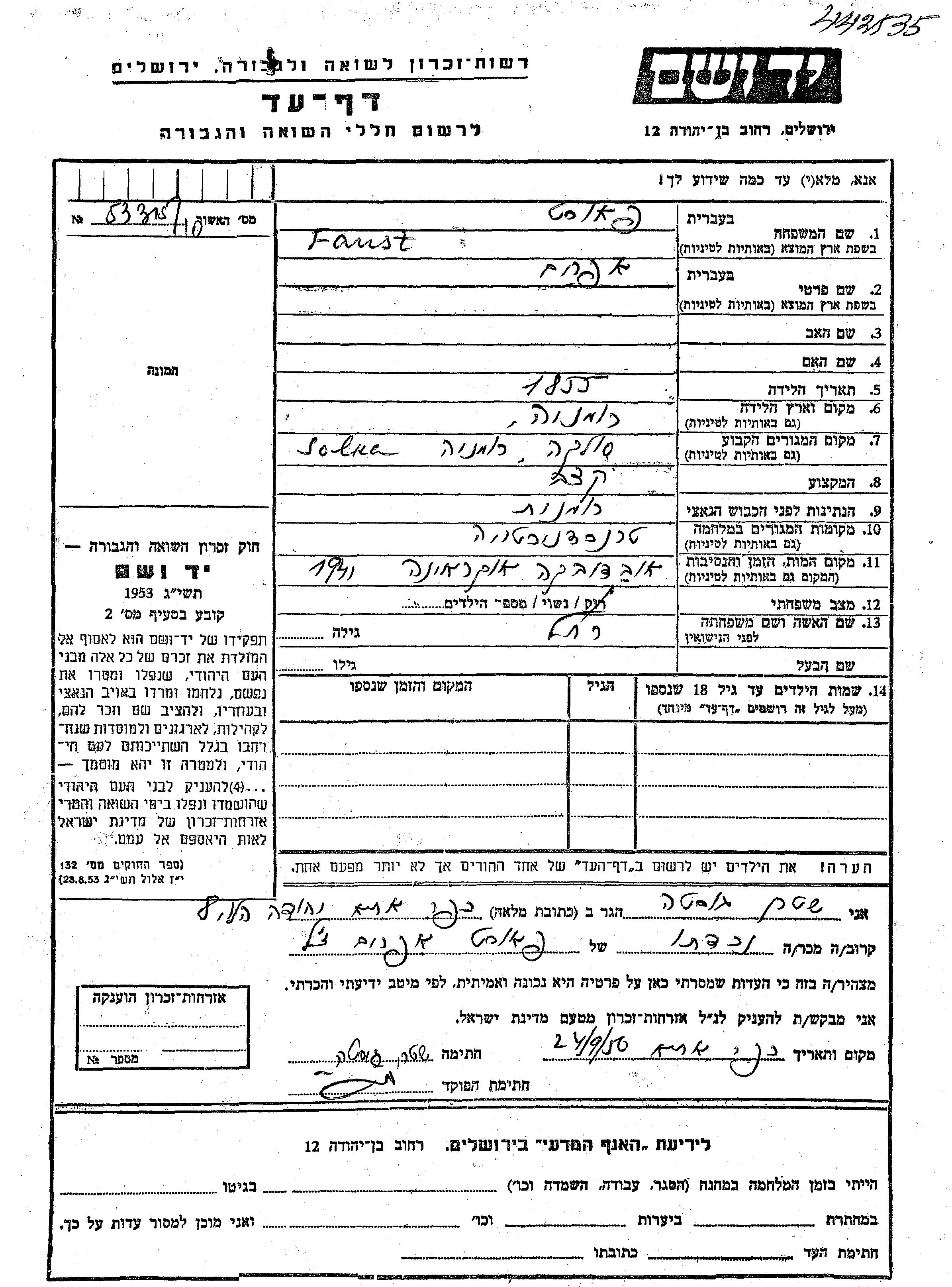 Yad Vashem - Pages of Testimony Names Memorial Collection