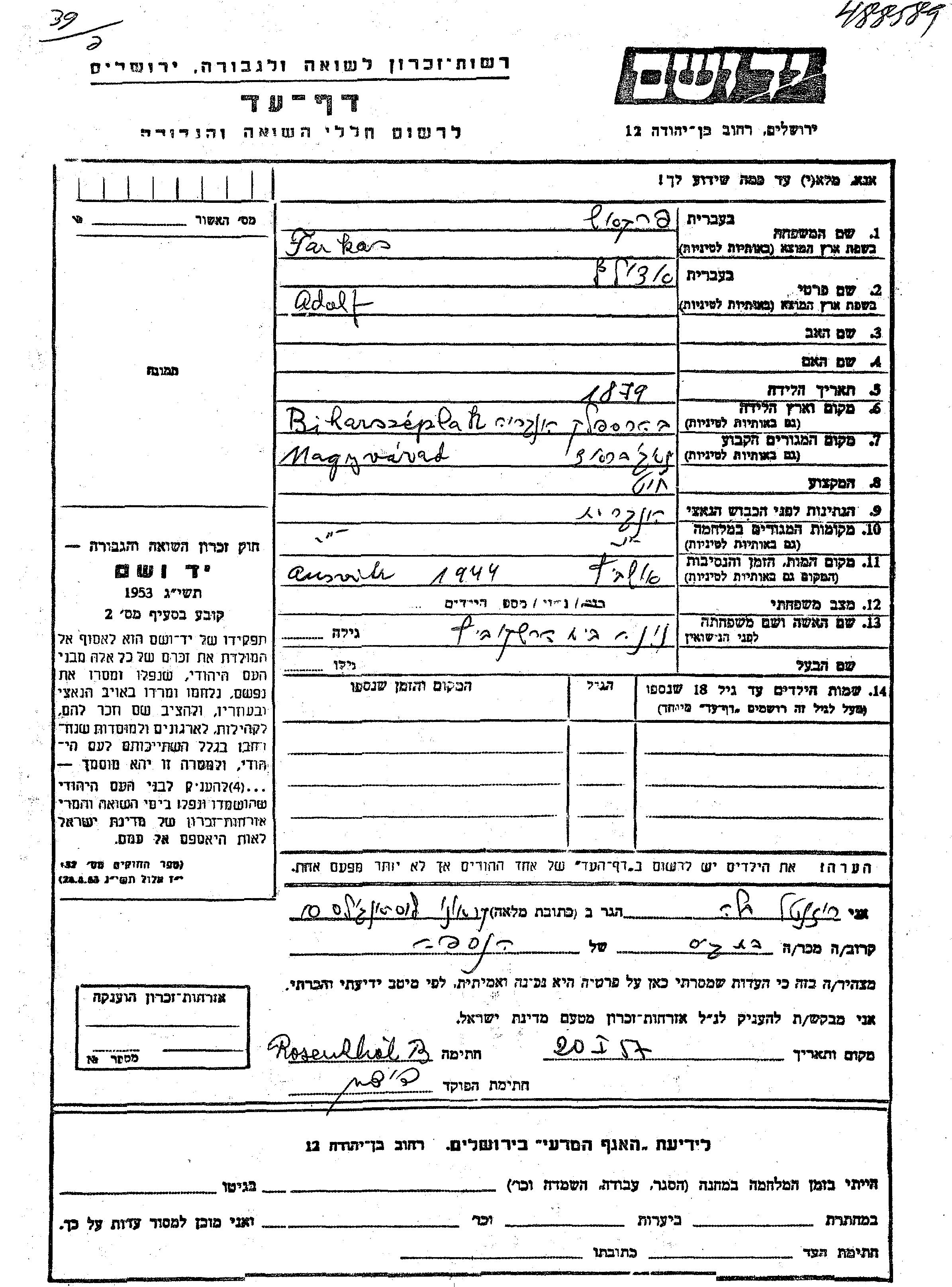 Yad Vashem - Pages of Testimony Names Memorial Collection