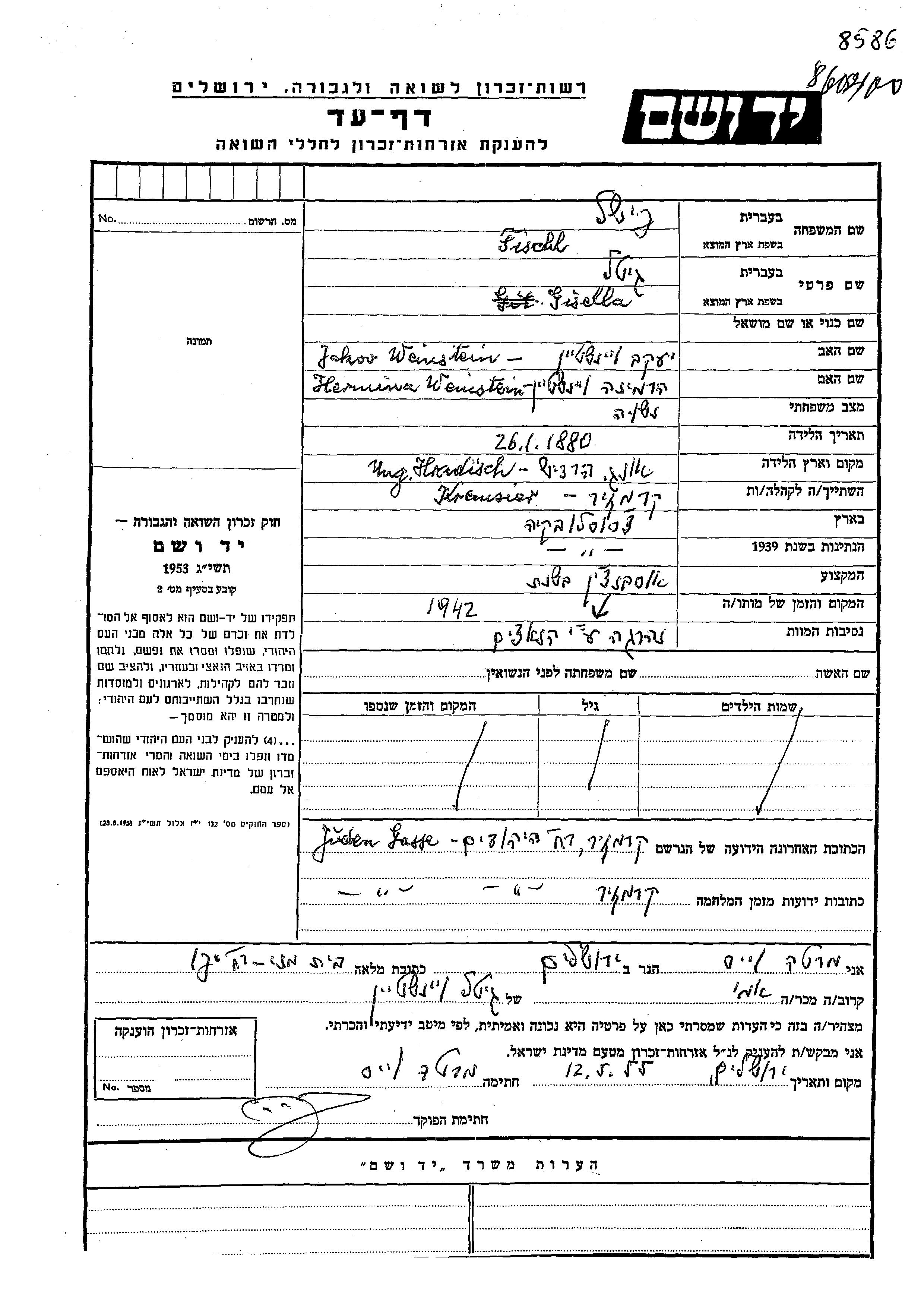 Yad Vashem - Pages of Testimony Names Memorial Collection