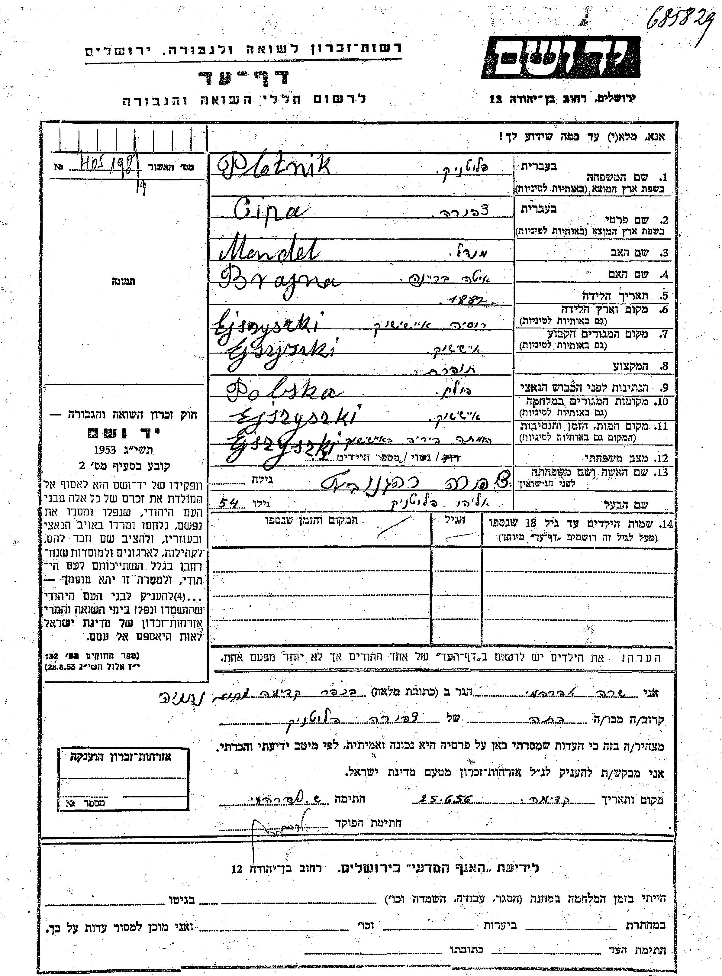 Yad Vashem - Pages of Testimony Names Memorial Collection