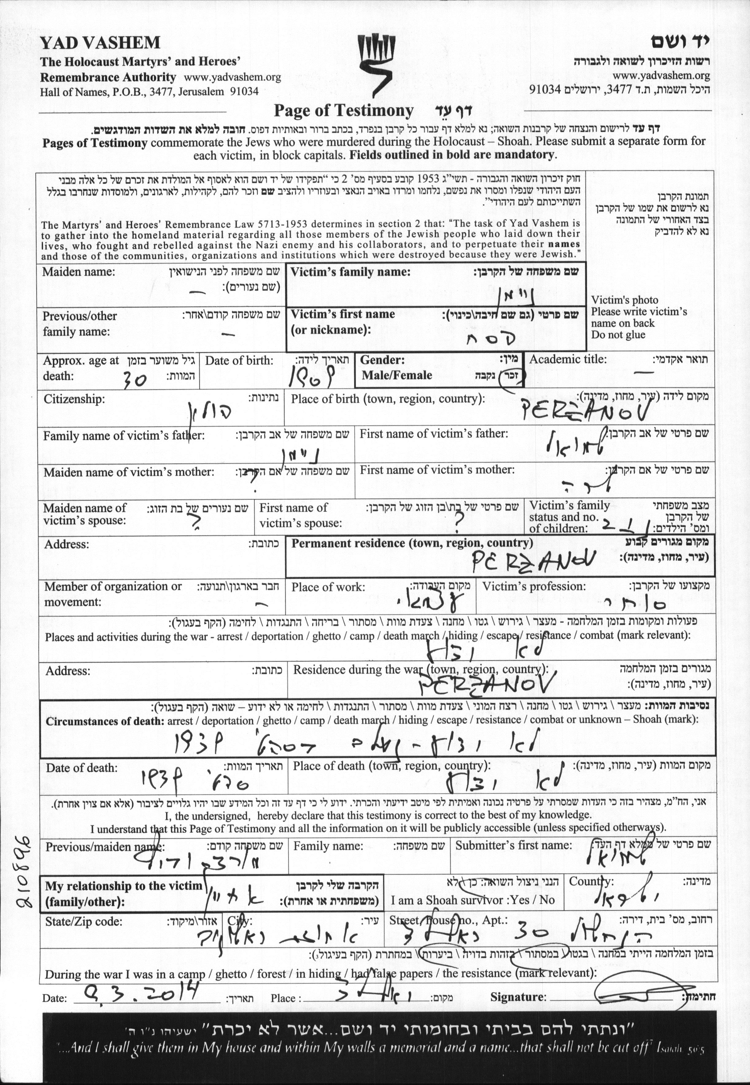 Yad Vashem - Pages of Testimony Names Memorial Collection