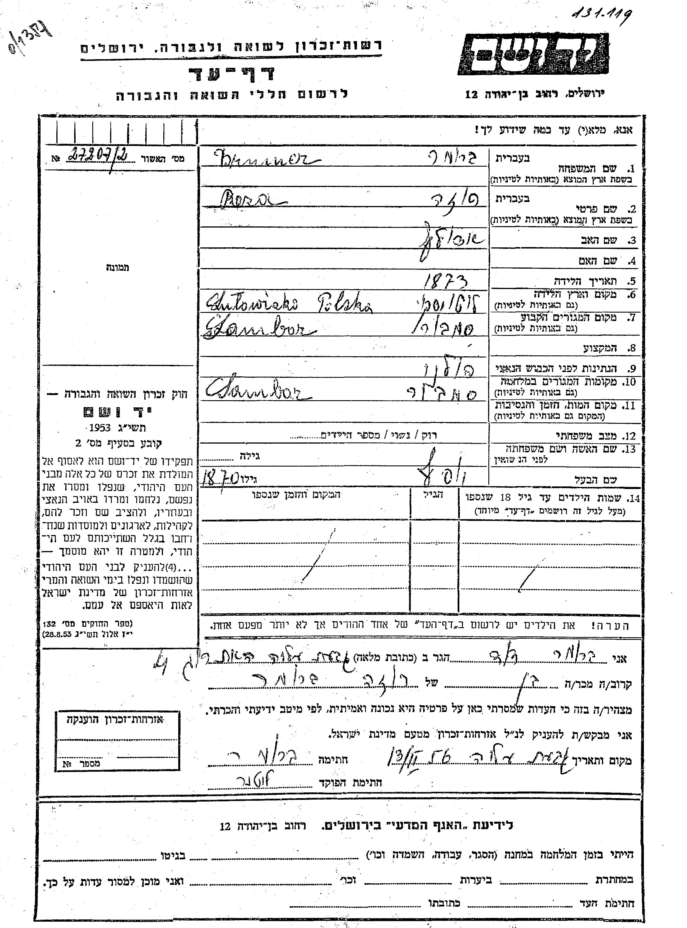 Yad Vashem - Pages of Testimony Names Memorial Collection