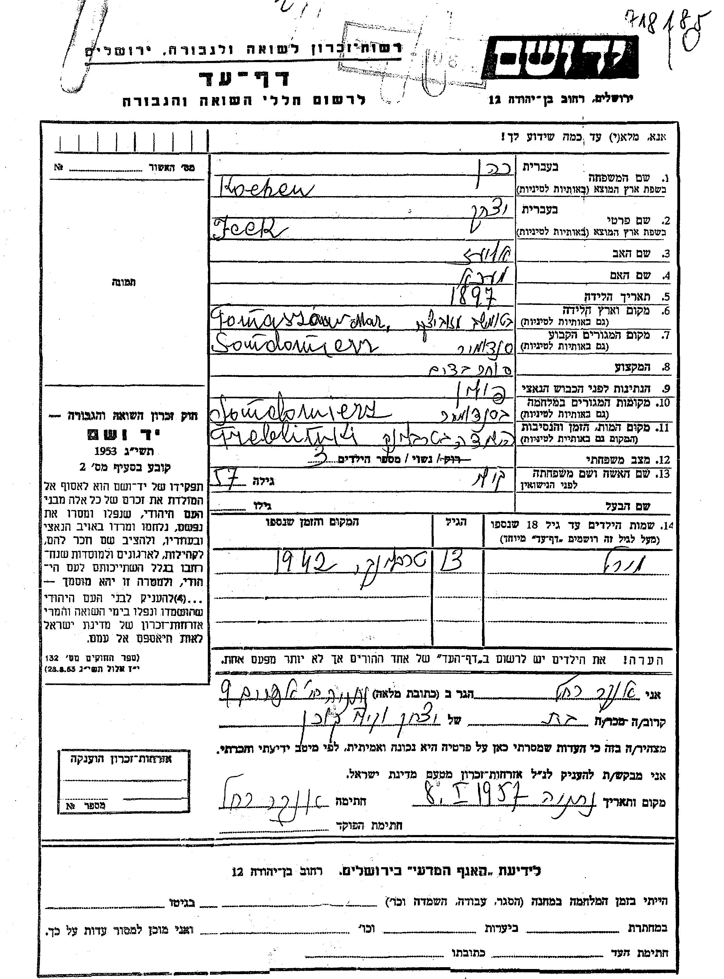 Yad Vashem - Pages of Testimony Names Memorial Collection