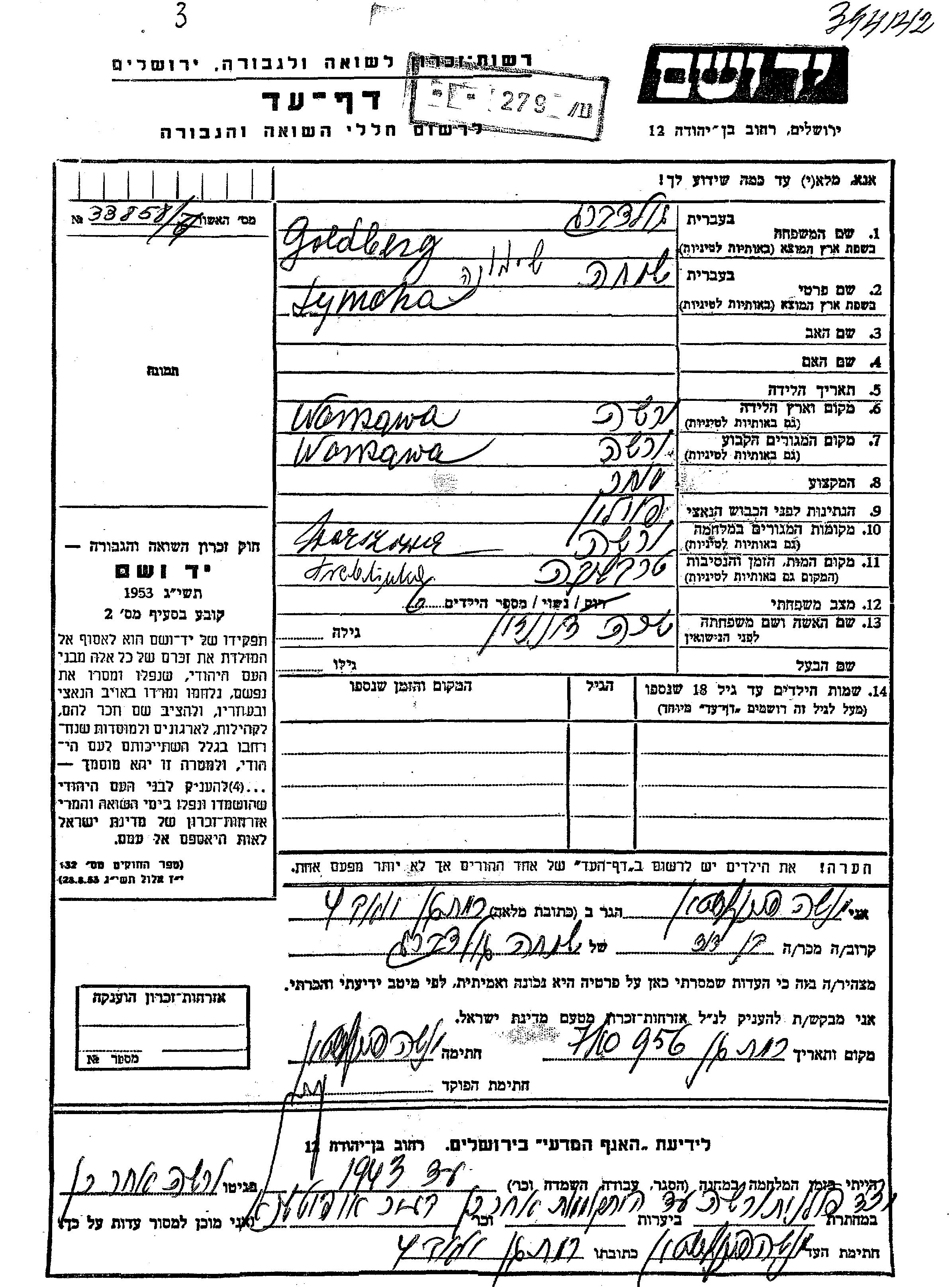 Yad Vashem - Pages of Testimony Names Memorial Collection