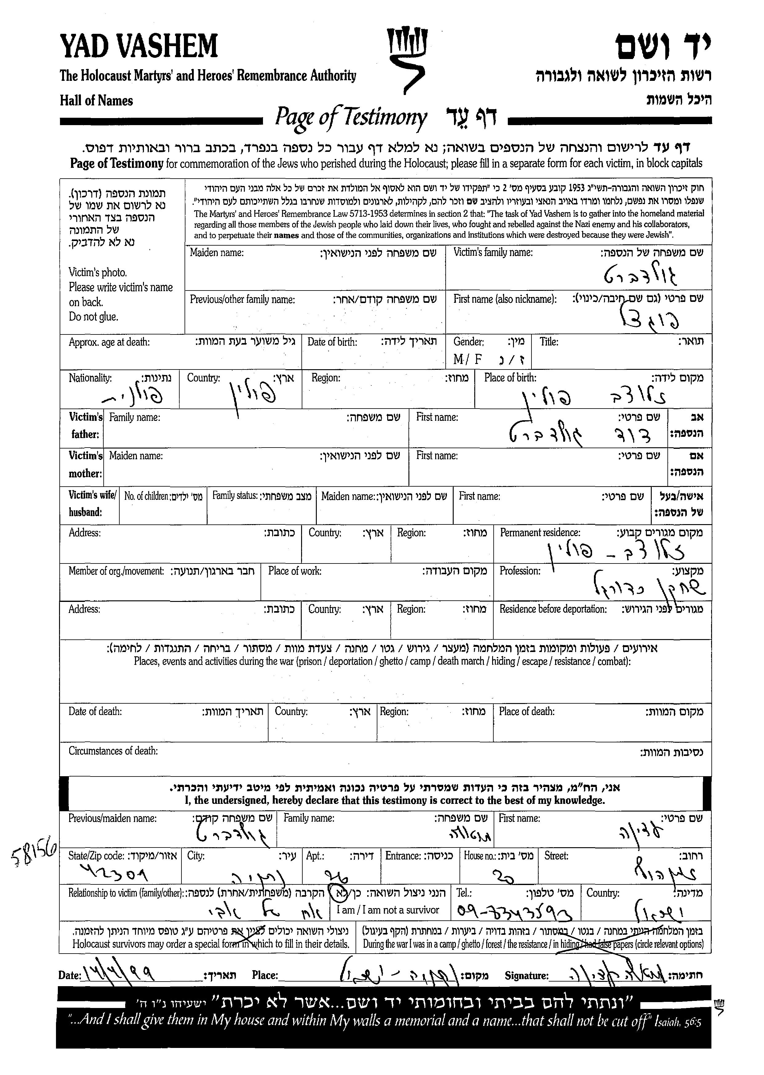 Yad Vashem - Pages of Testimony Names Memorial Collection