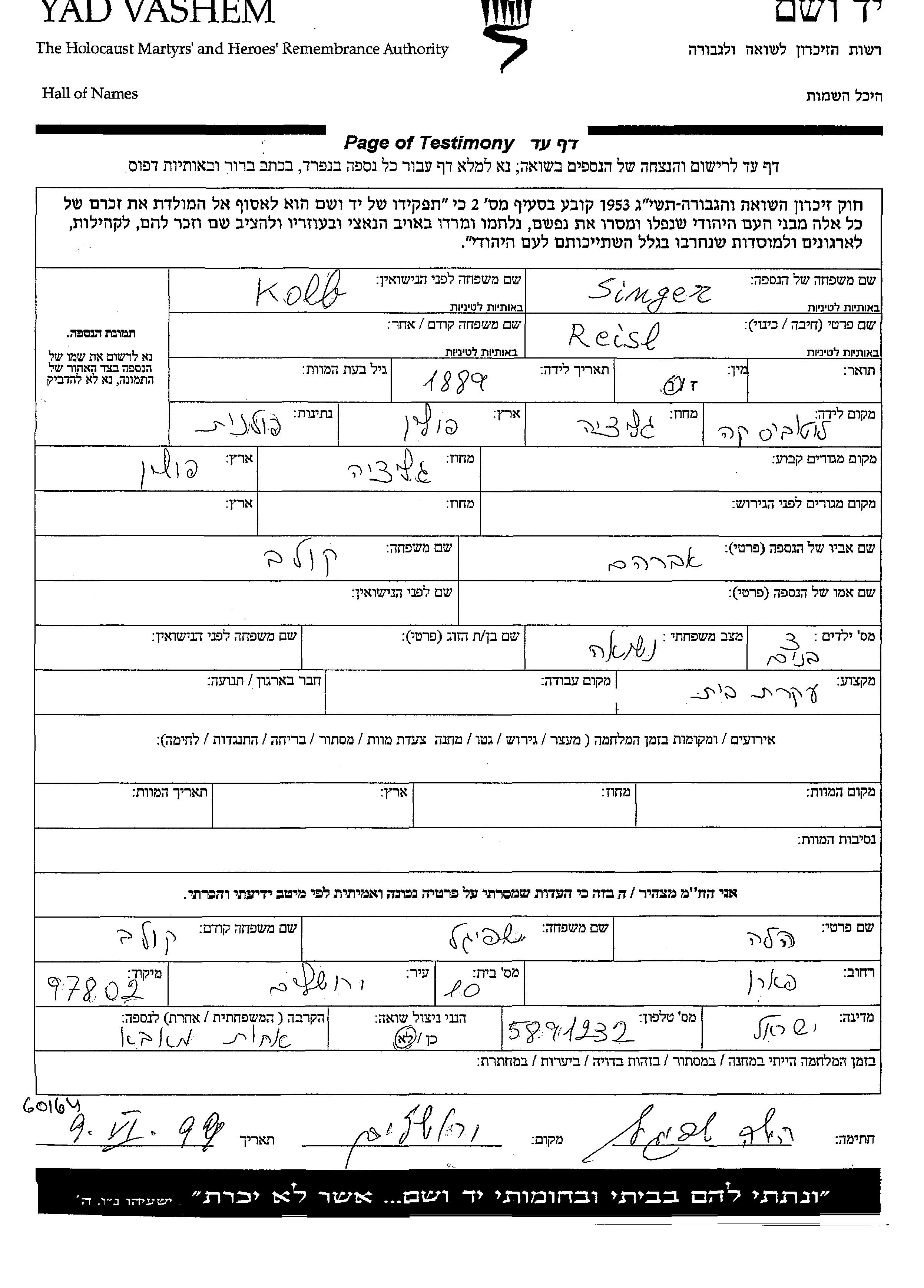 Yad Vashem - Pages of Testimony Names Memorial Collection