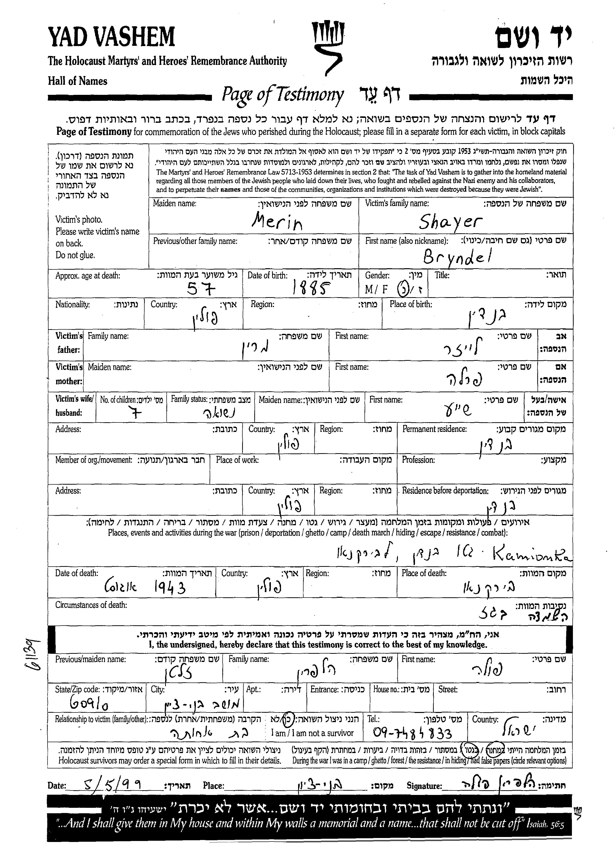 Yad Vashem - Pages of Testimony Names Memorial Collection