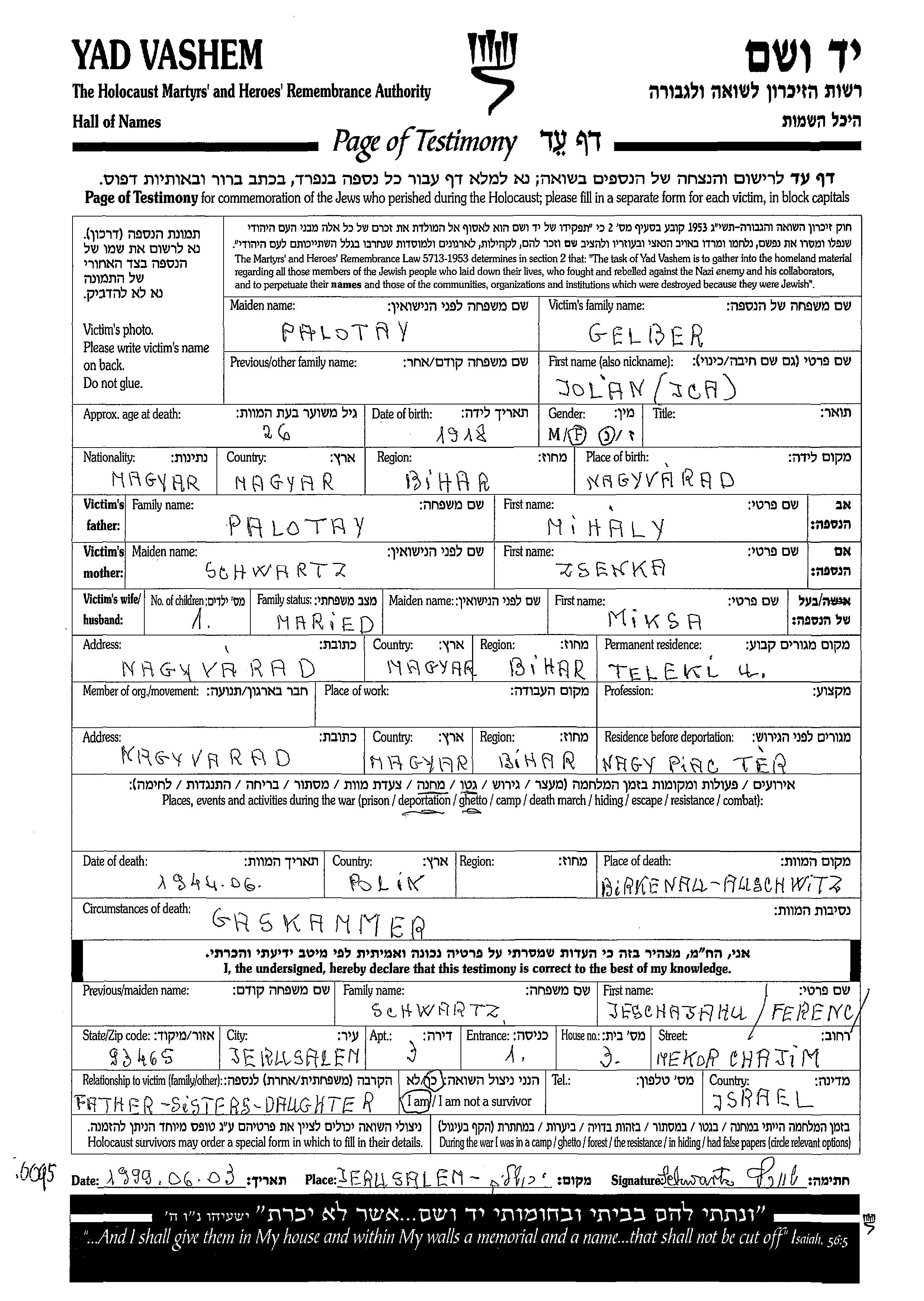 Yad Vashem - Pages of Testimony Names Memorial Collection