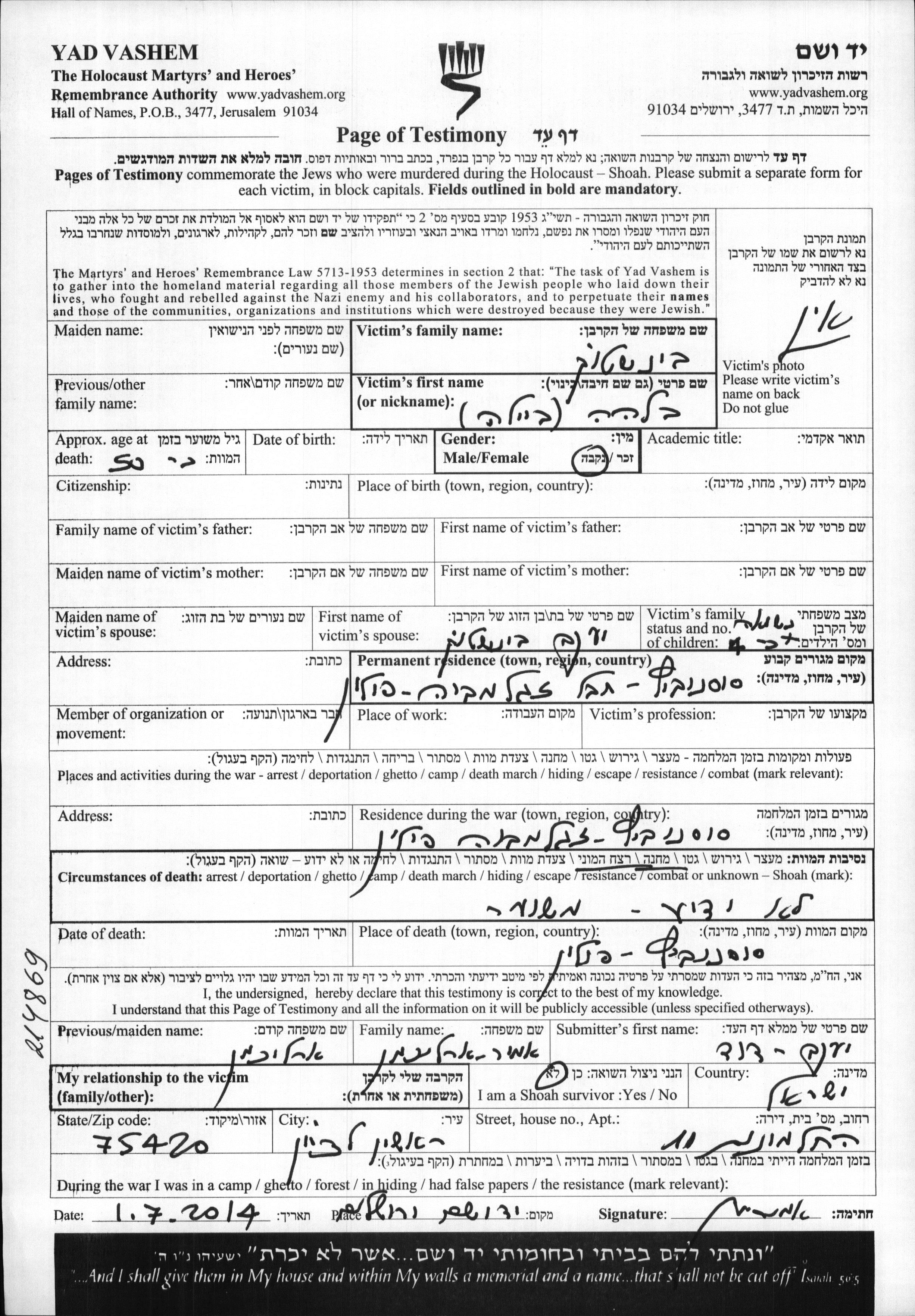 Yad Vashem - Pages of Testimony Names Memorial Collection