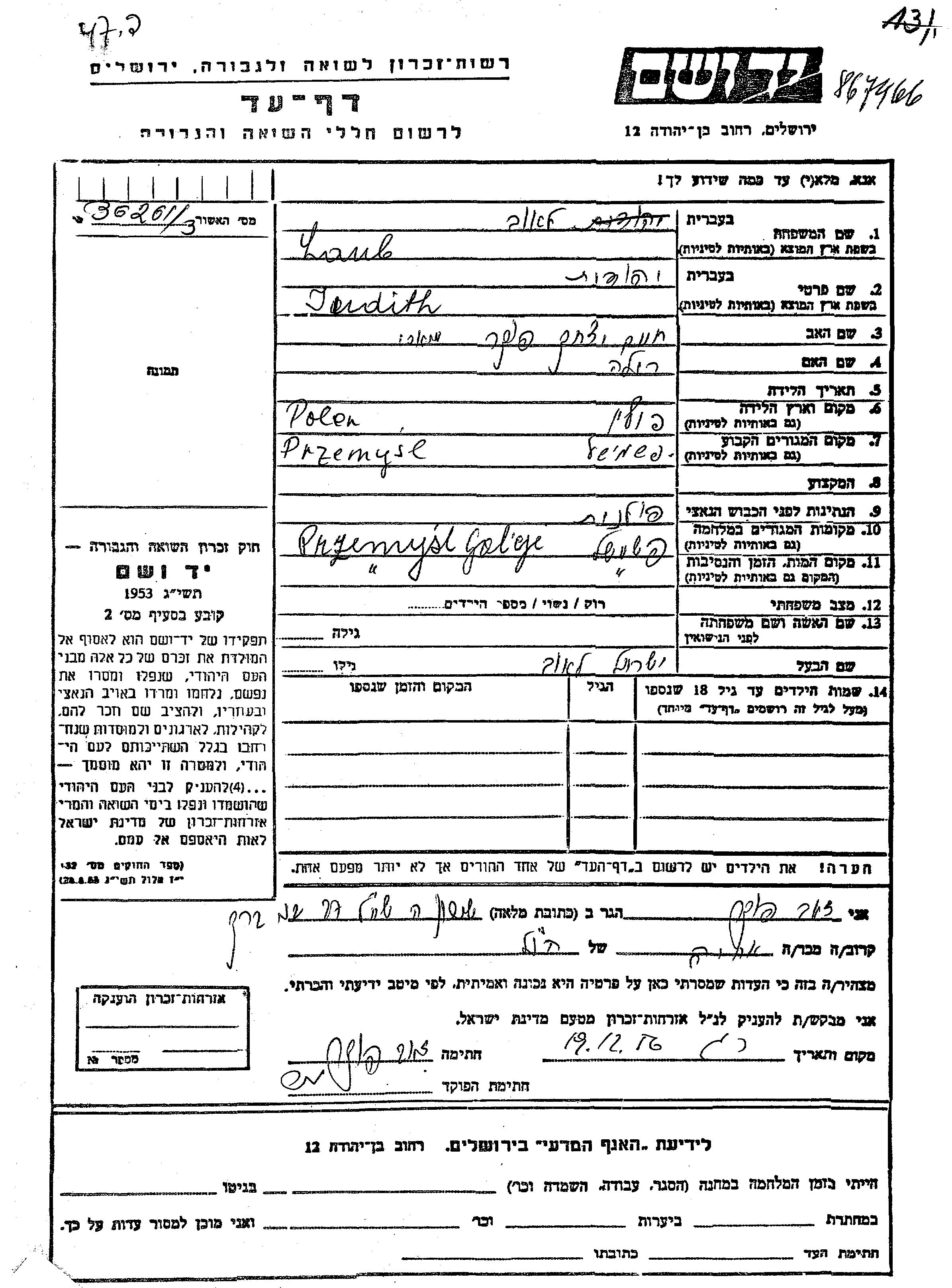 Laub Judith Przemysl, Pologne Feuille de témoignage