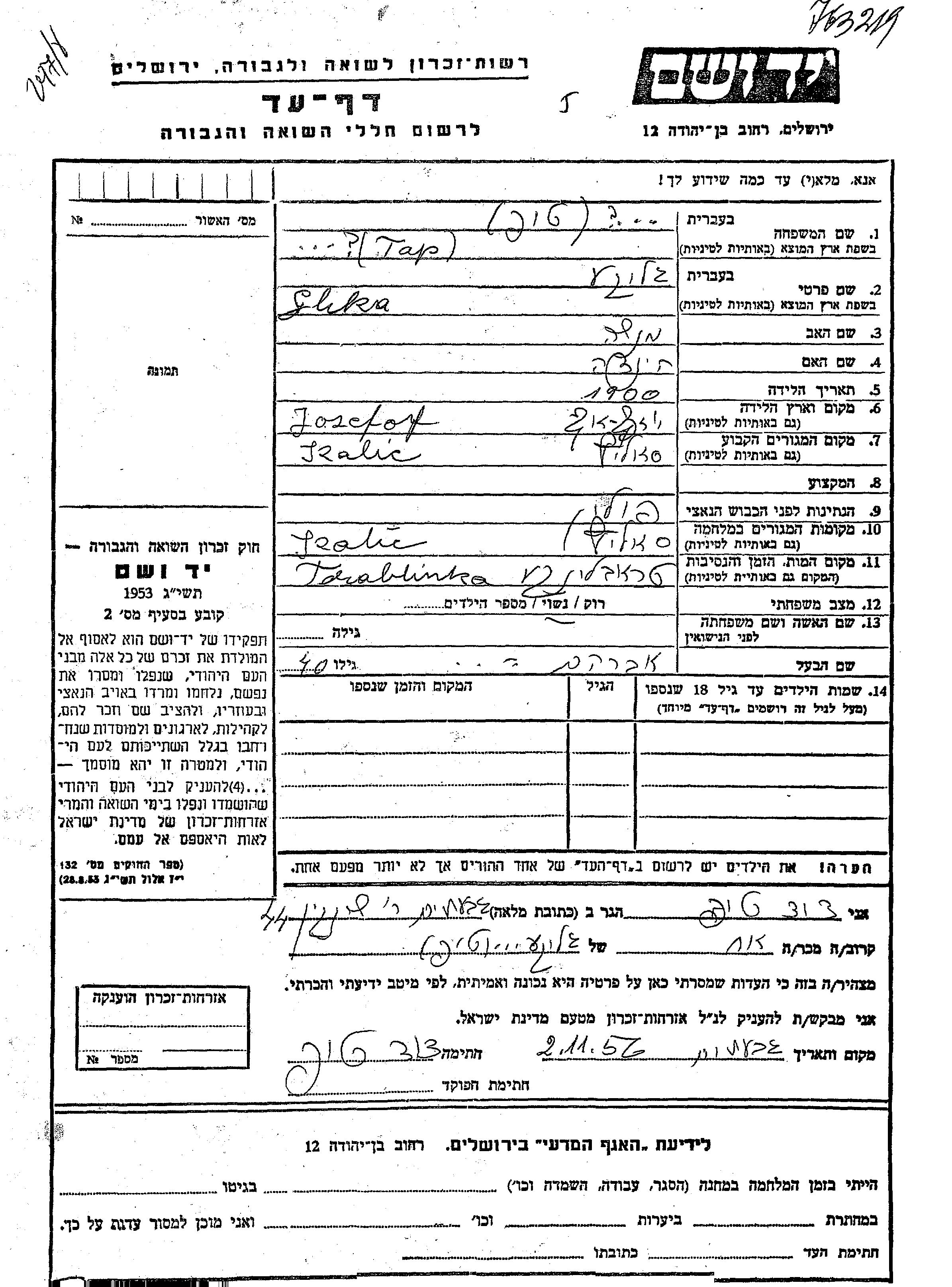 Yad Vashem - Pages of Testimony Names Memorial Collection