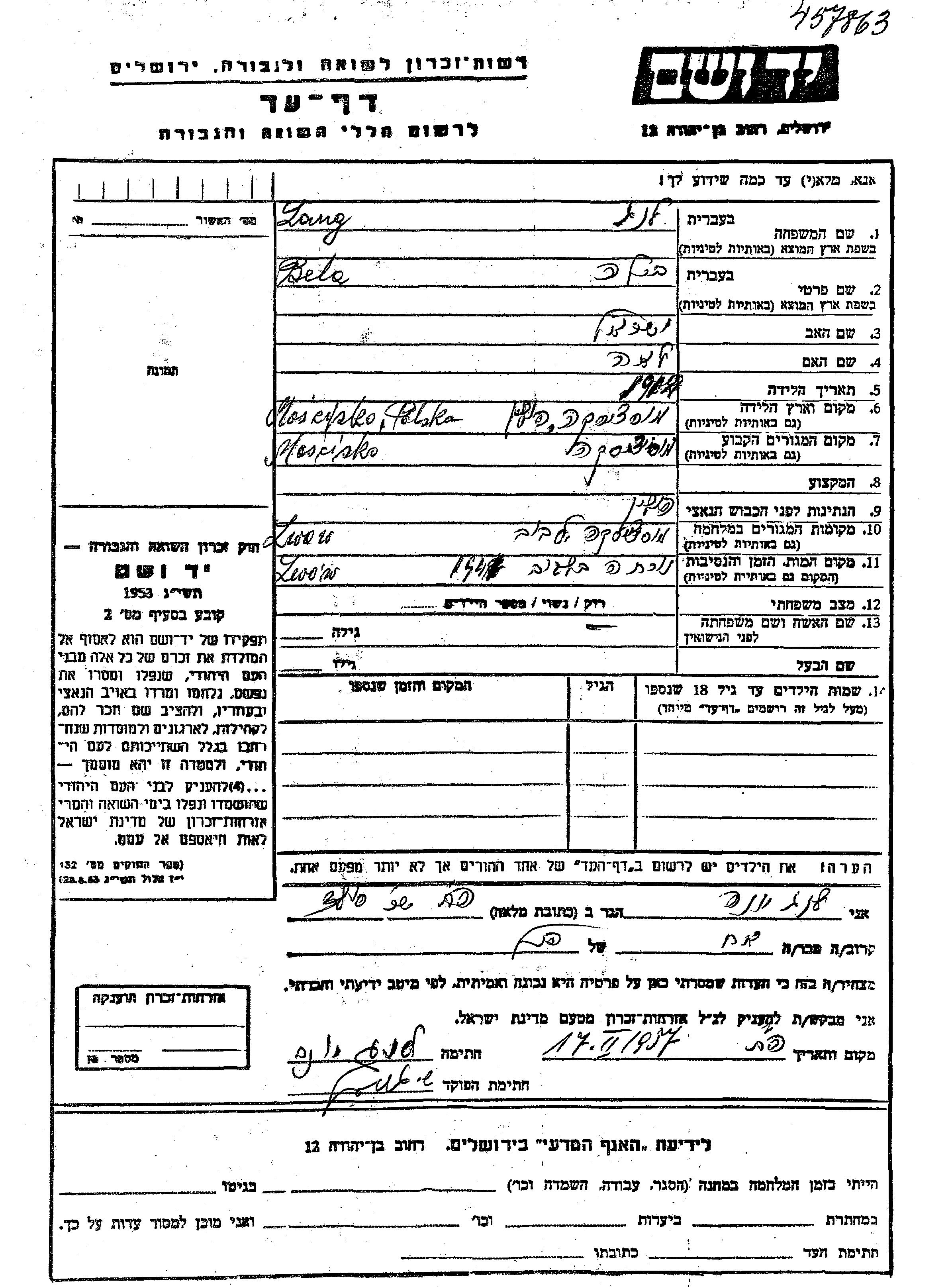 Yad Vashem - Pages of Testimony Names Memorial Collection