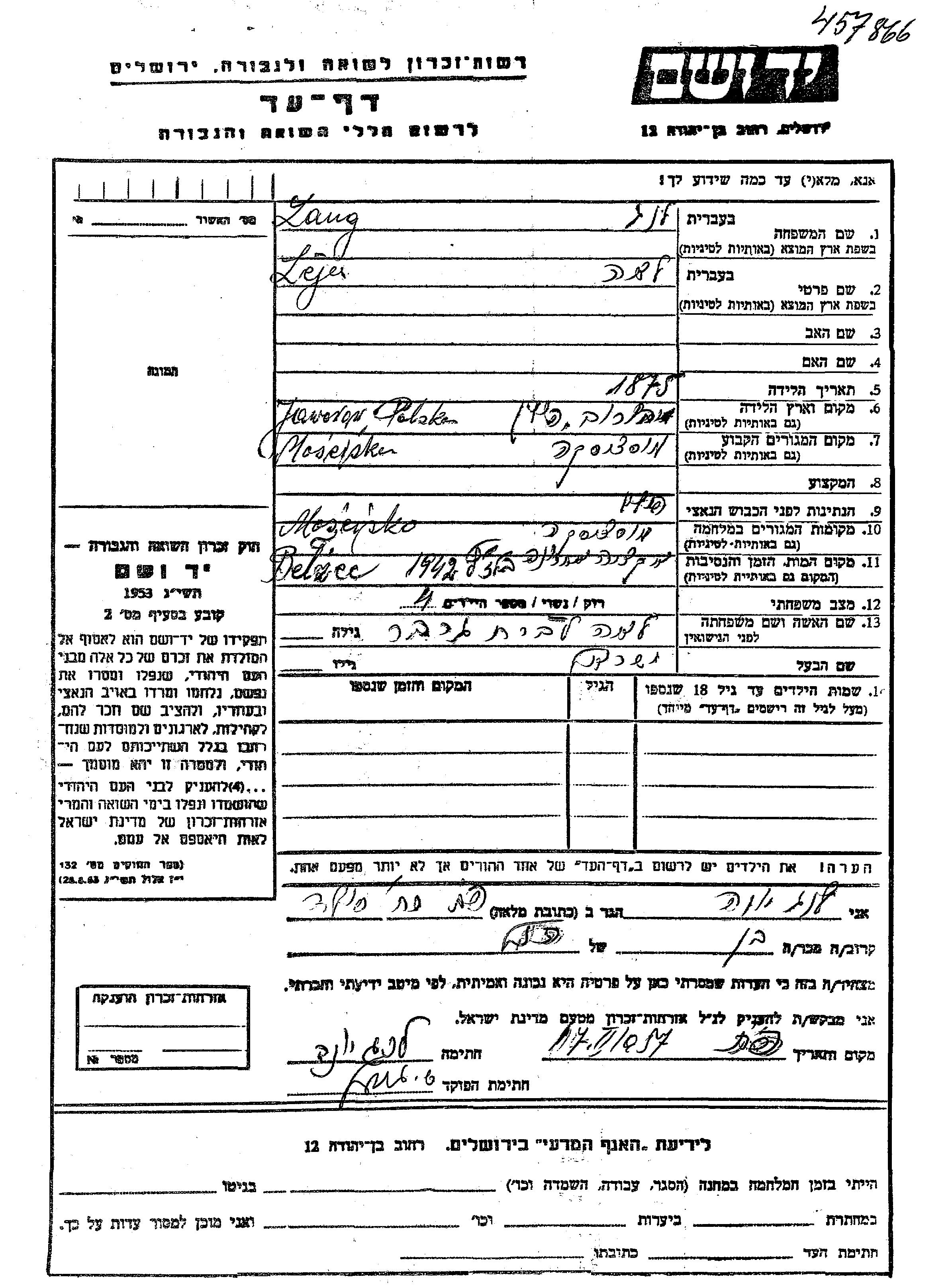 Yad Vashem - Pages of Testimony Names Memorial Collection