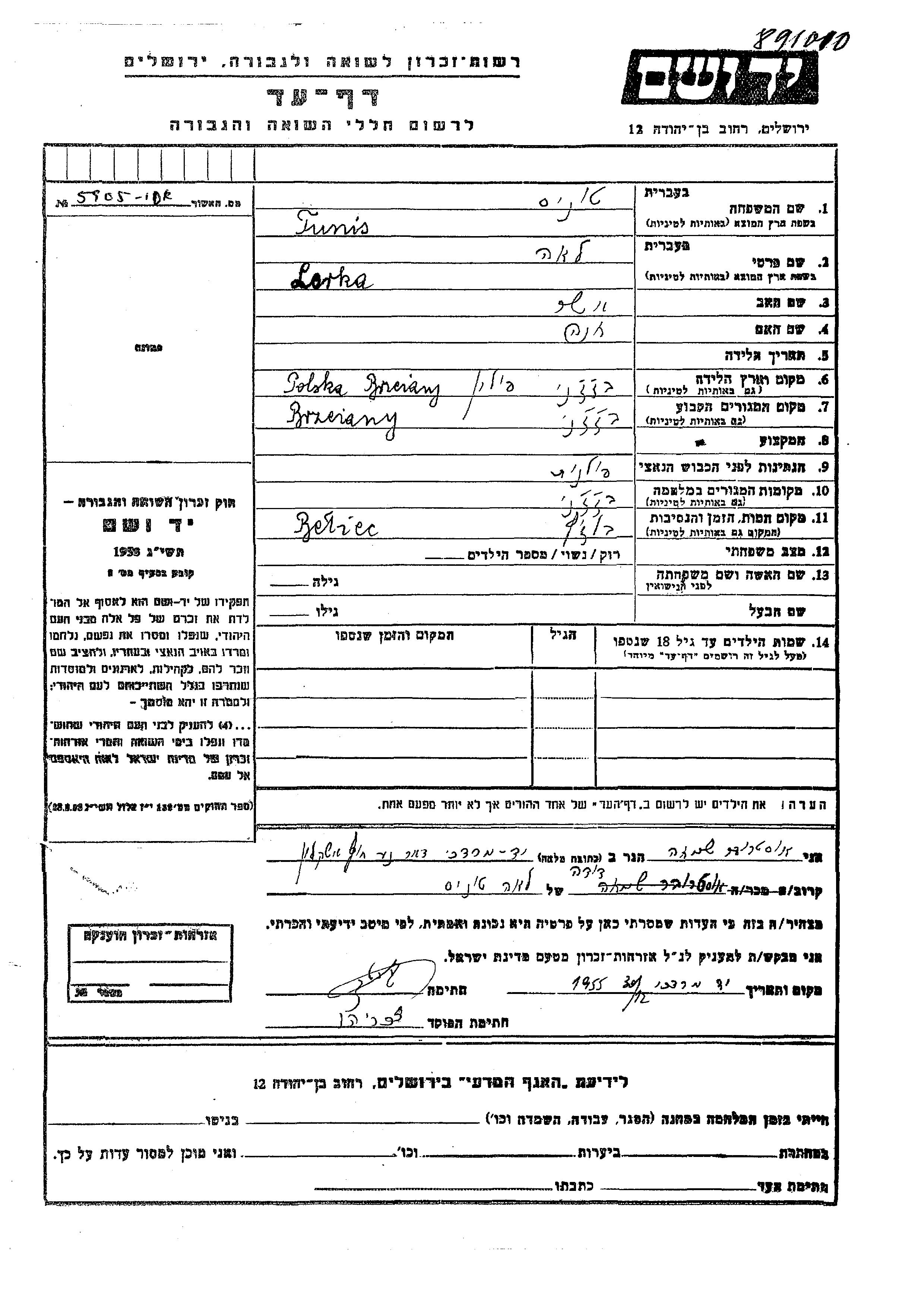 Yad Vashem - Pages of Testimony Names Memorial Collection