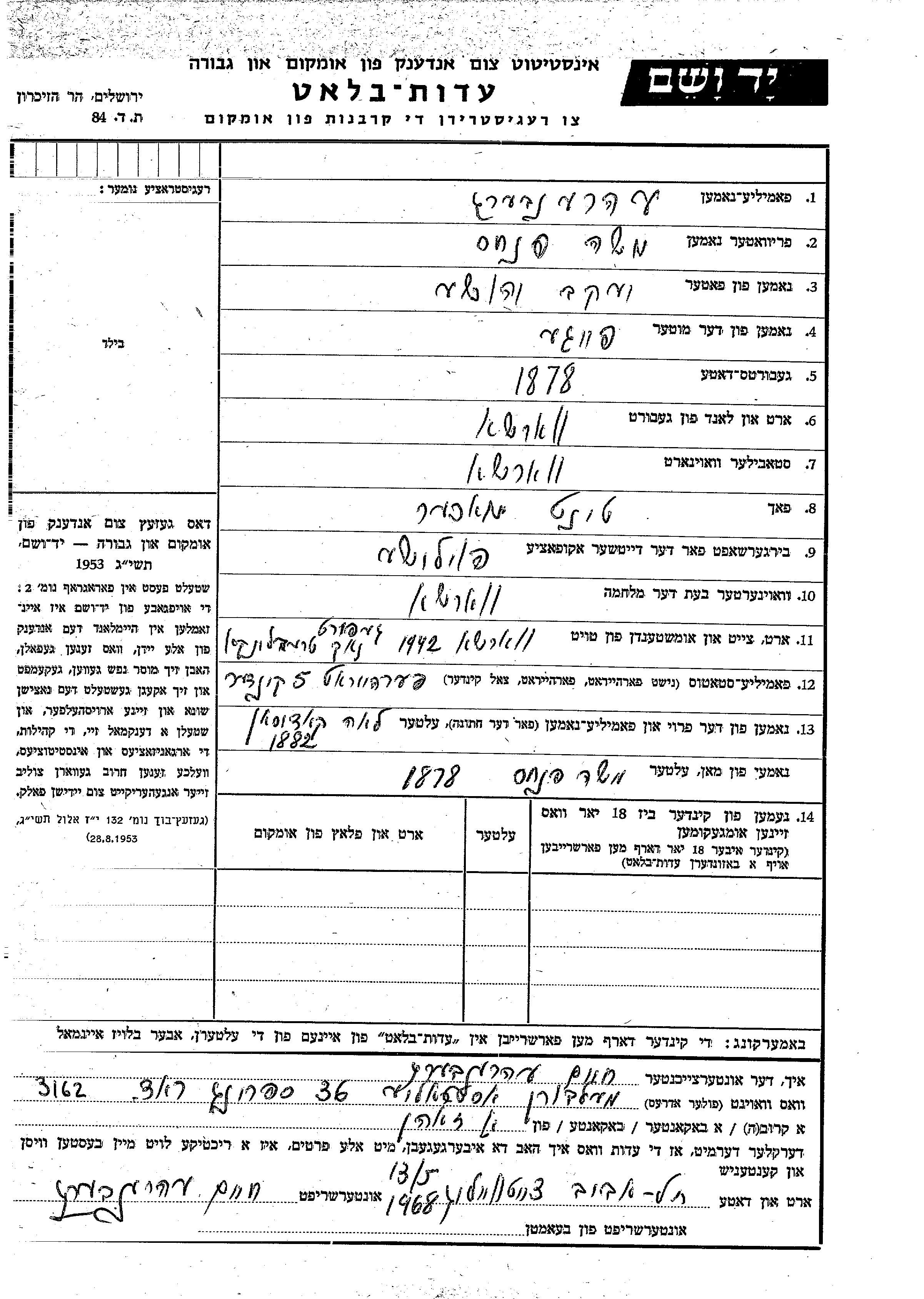 Arenberg Moshe Pinkhas 1878 Warsaw, Pologne Feuille de témoignage