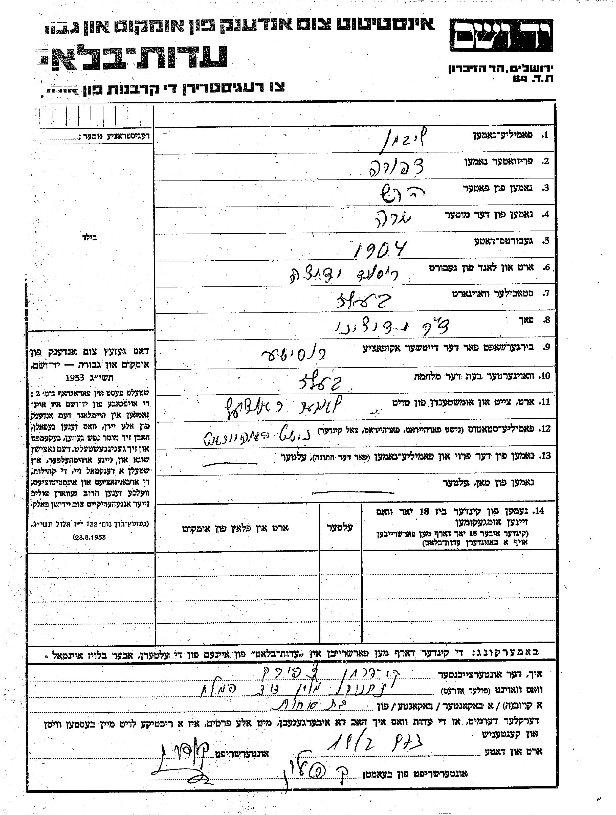 Libman Tzipora 1904 Bălți, Roumanie Feuille de témoignage