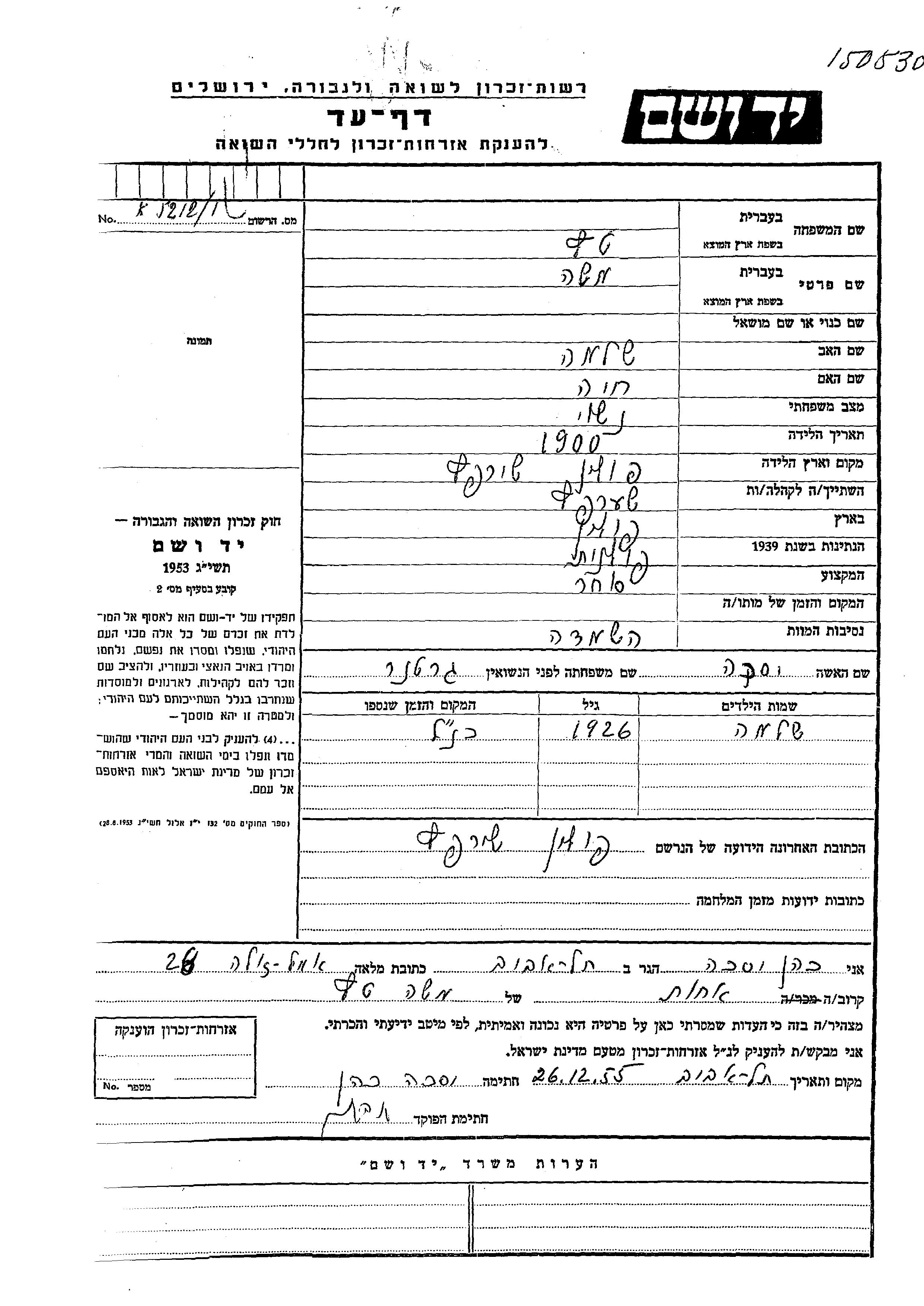 Yad Vashem - Pages of Testimony Names Memorial Collection