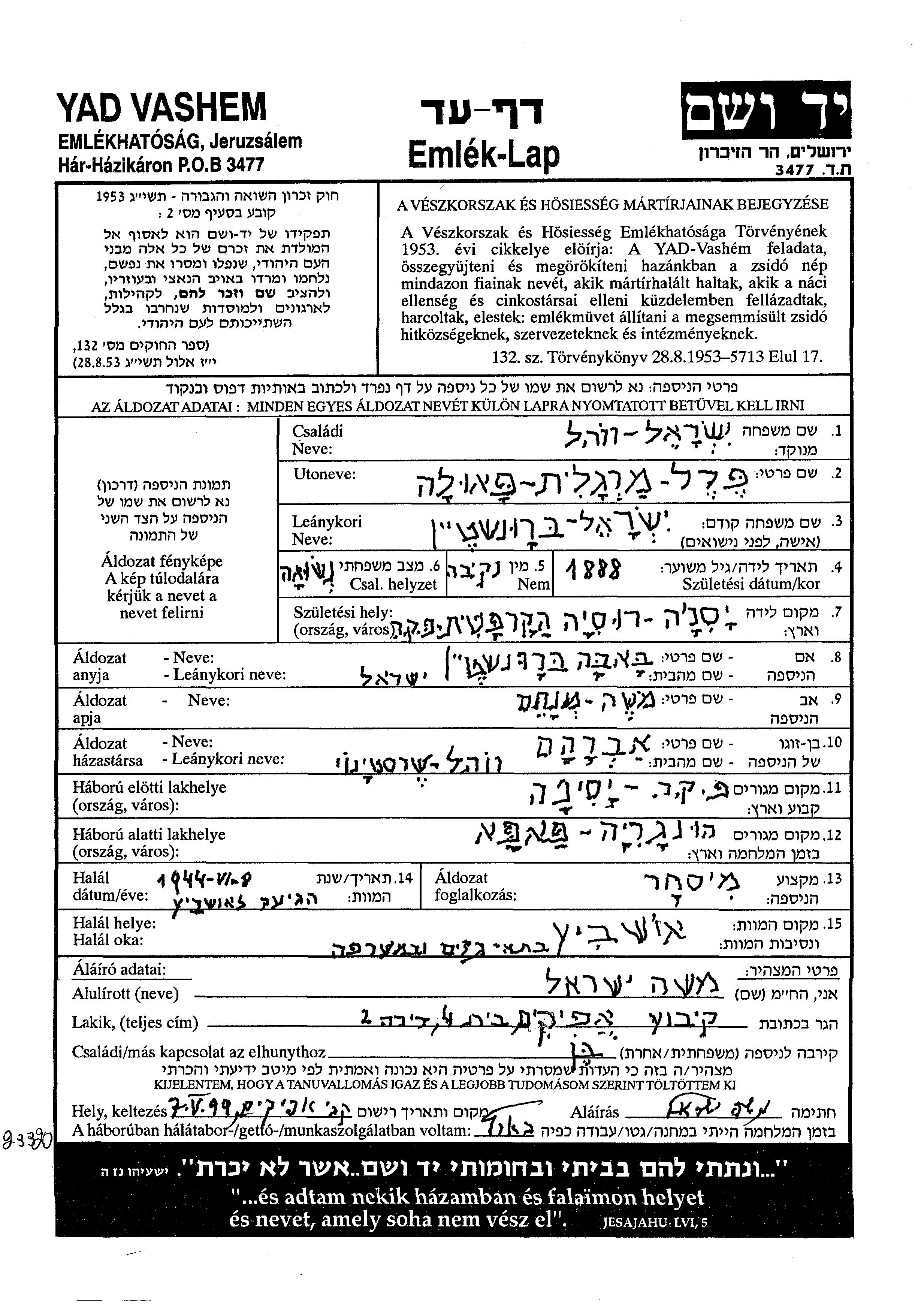 Yad Vashem - Pages of Testimony Names Memorial Collection