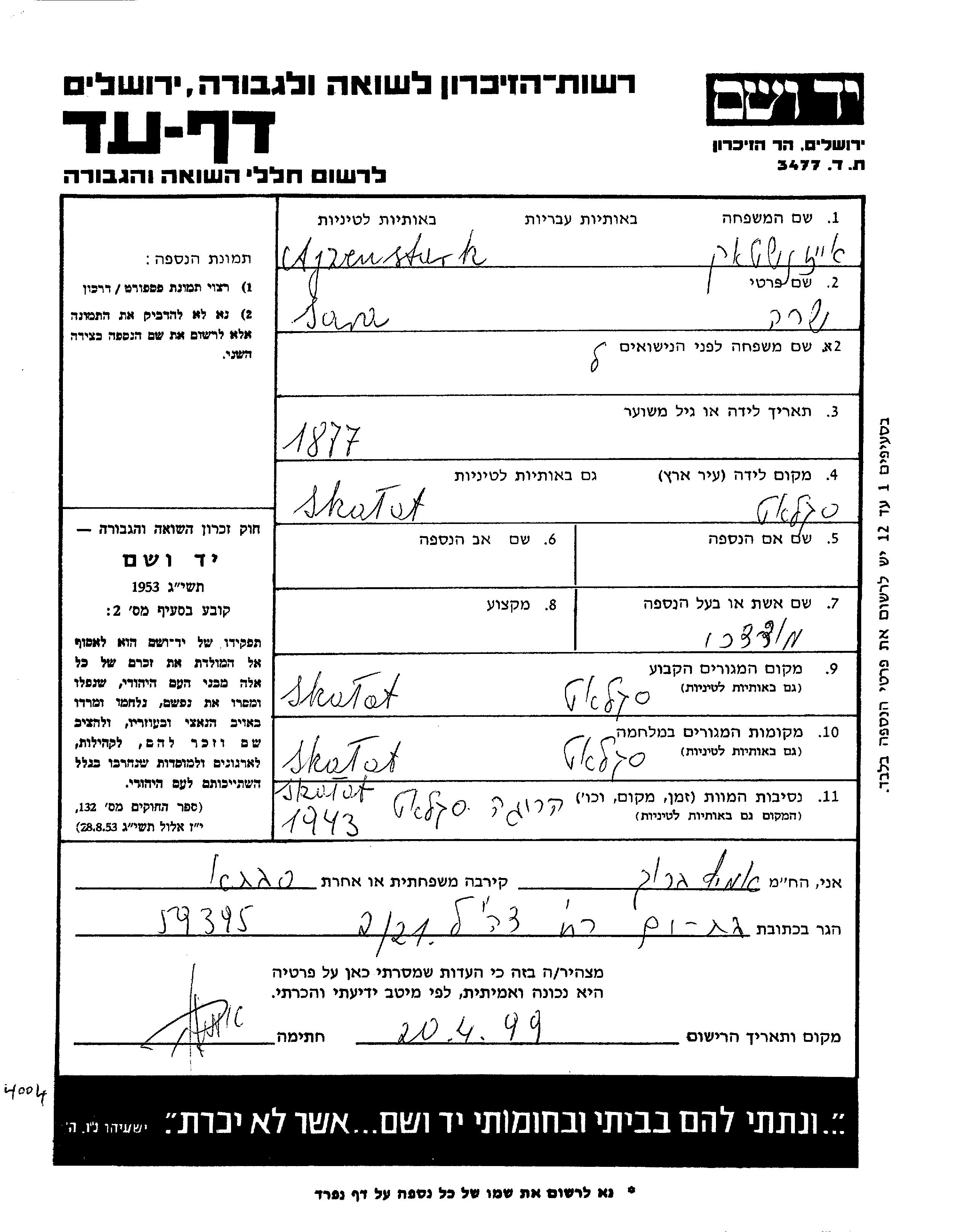 Yad Vashem - Pages of Testimony Names Memorial Collection