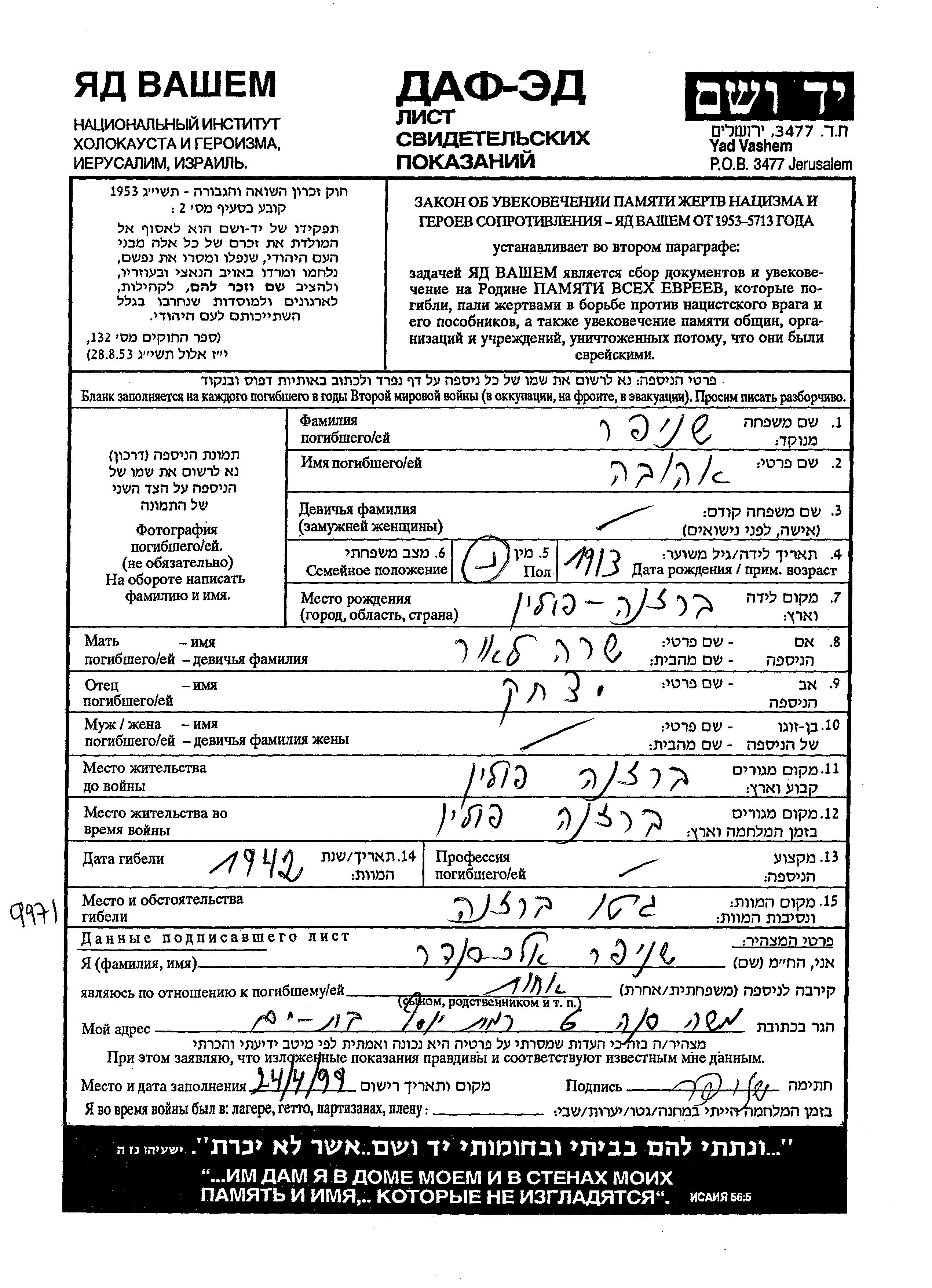 Yad Vashem - Pages of Testimony Names Memorial Collection