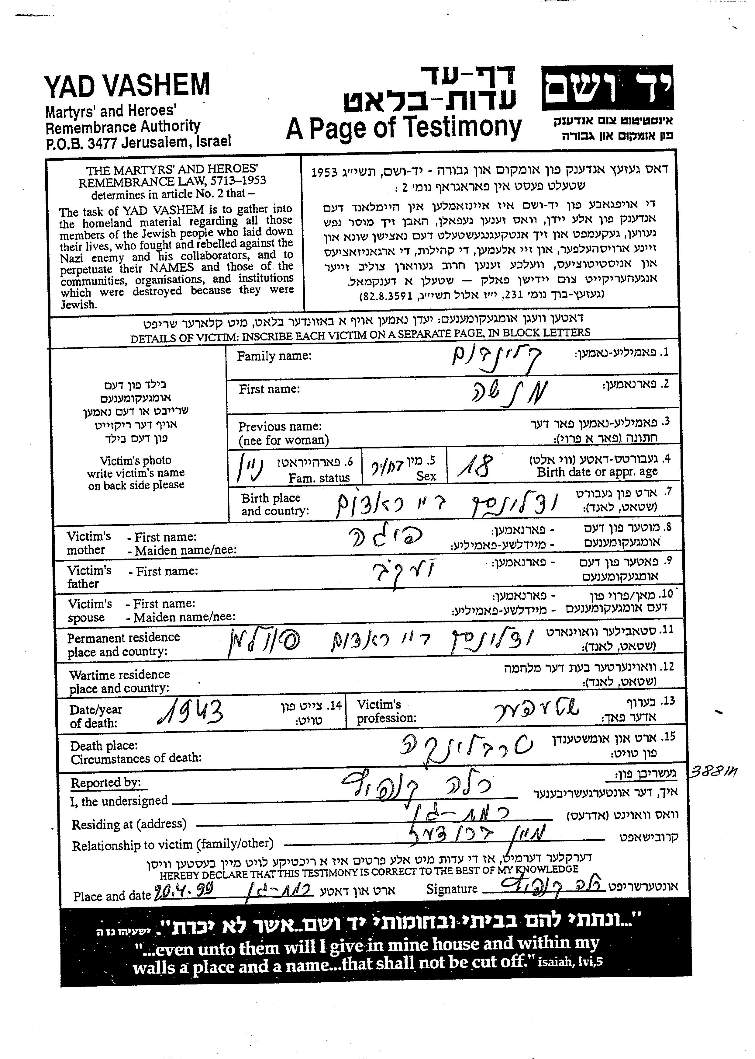 Yad Vashem - Pages of Testimony Names Memorial Collection