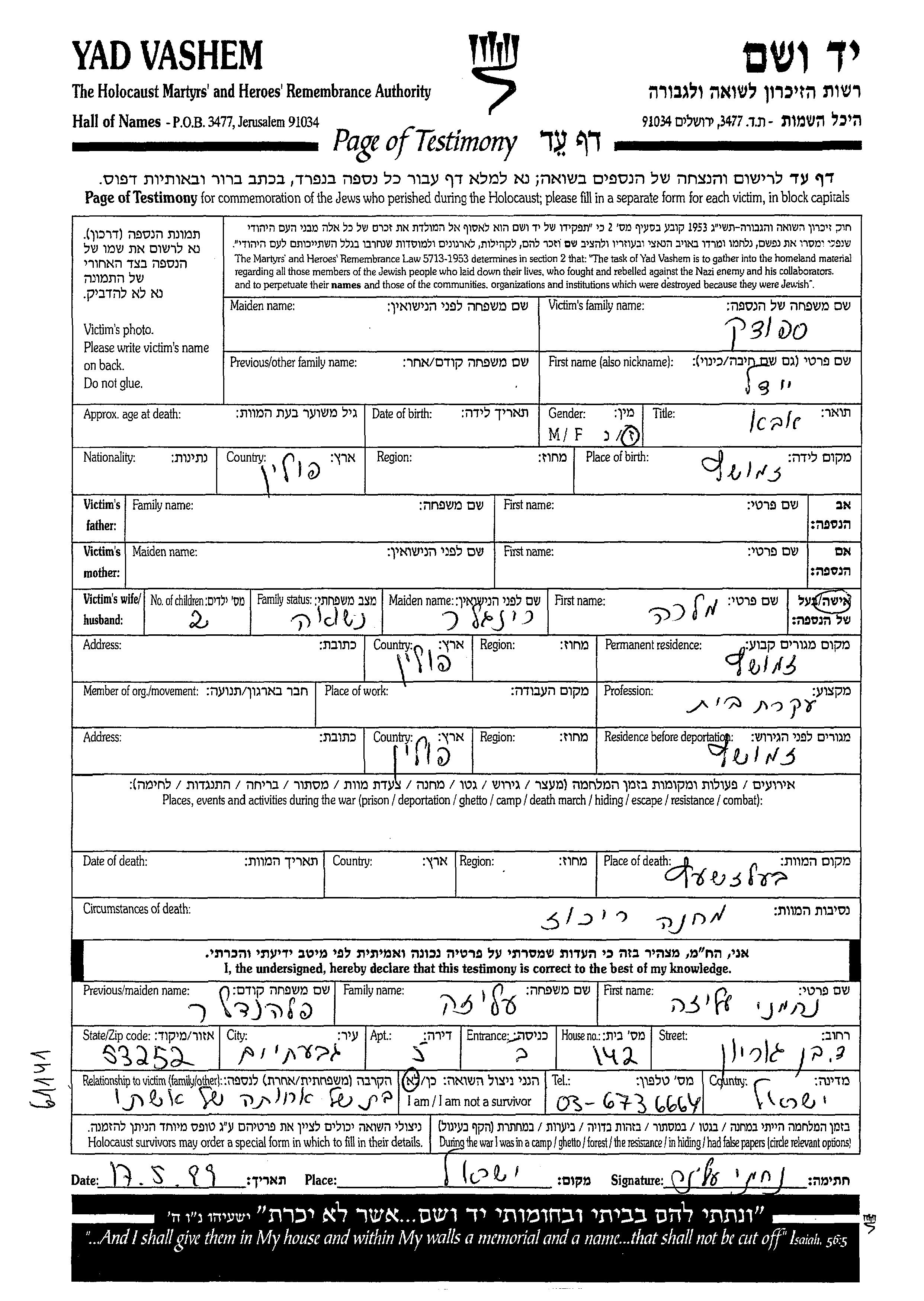 Yad Vashem - Pages of Testimony Names Memorial Collection
