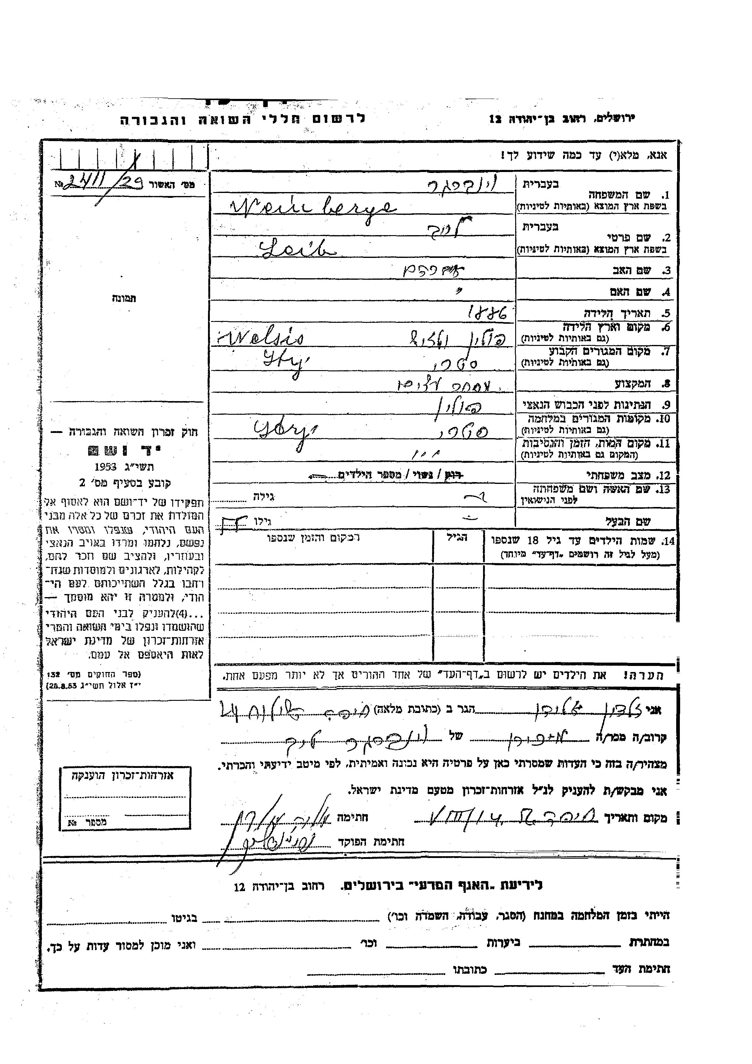 Leib Weinbergr est né à Weldzirz, Pologne en 1886, fils de Avraham. Il était Négociant en bois et Marié. Avant la seconde guerre mondiale il vivait à Stryj, Pologne. Au cours de la guerre, il était à Stryj, Pologne.