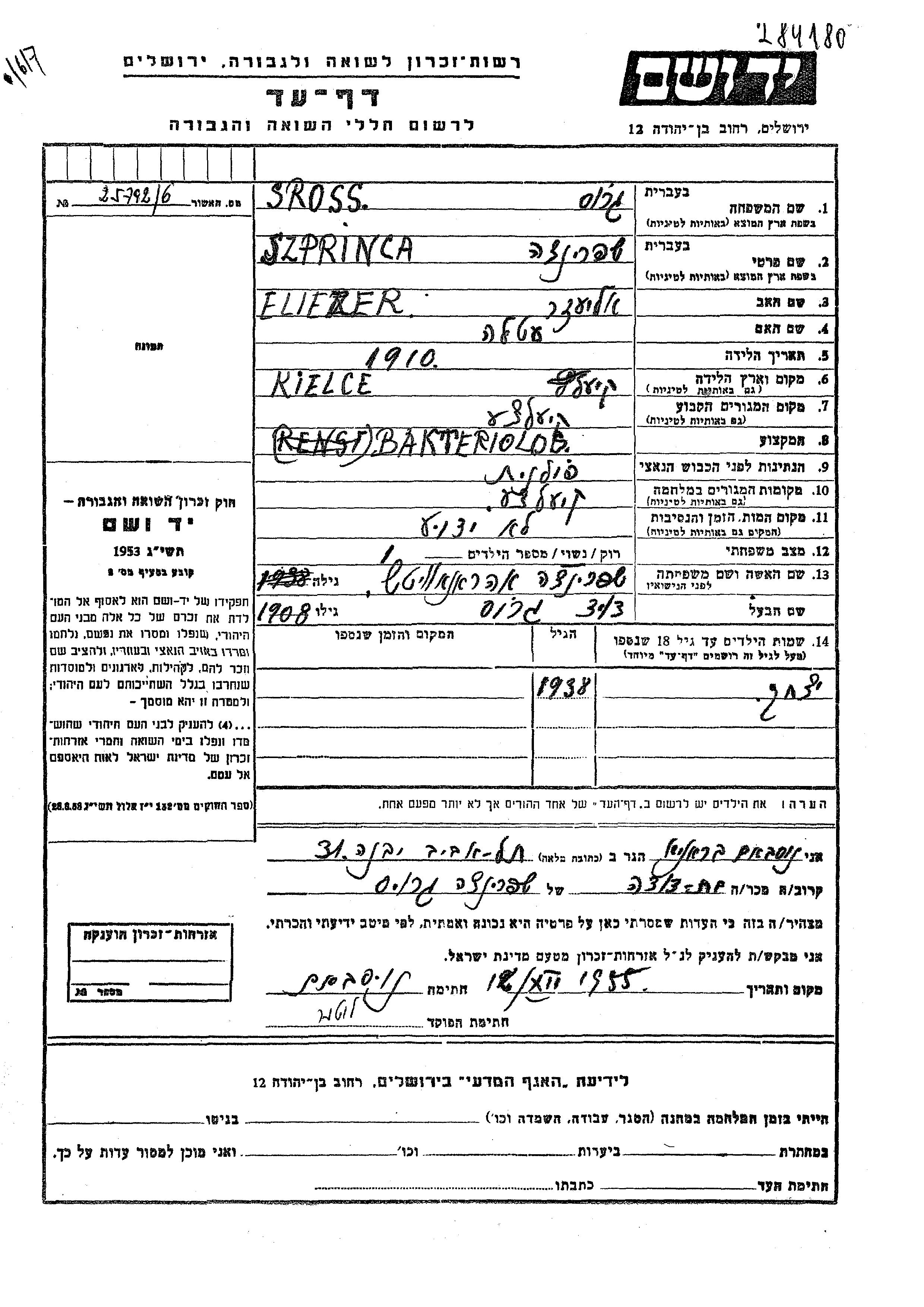 Yad Vashem - Pages of Testimony Names Memorial Collection