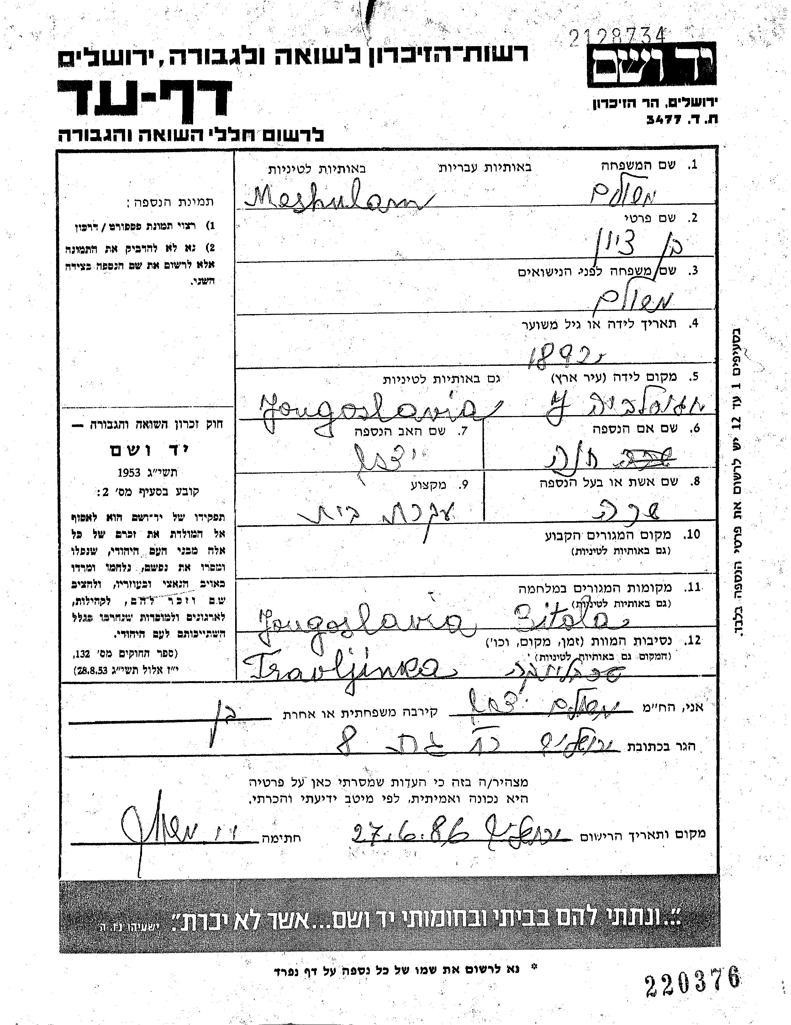 Yad Vashem - Pages of Testimony Names Memorial Collection