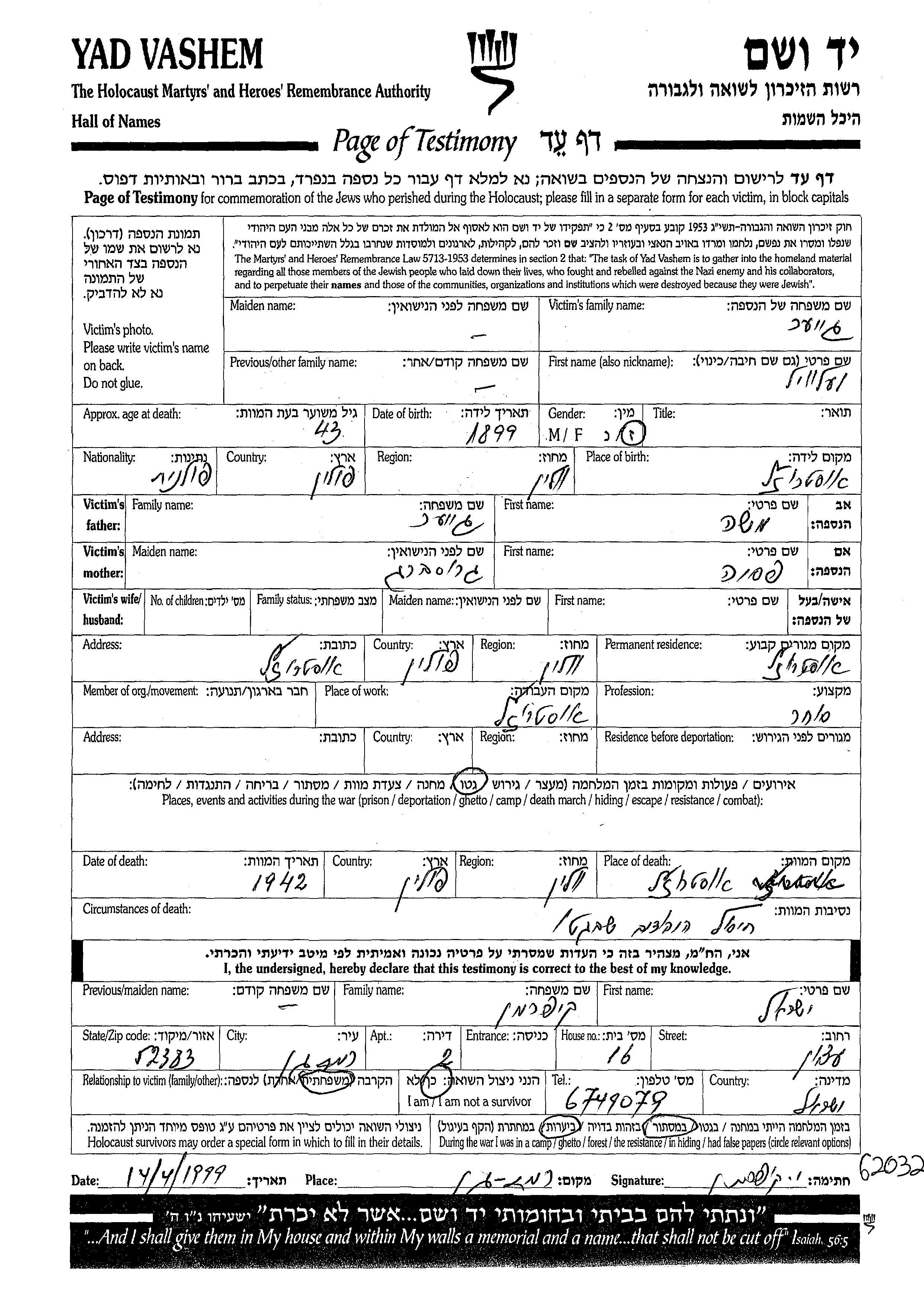 Recherche par date de la mort pendant la période de la Shoah: 1933-1945. Sélectionnez 'Exact'; dans la liste pour rechercher l'année exacte, ou sélectionner '+/- 2 ans'; ou '+/- 5 ans