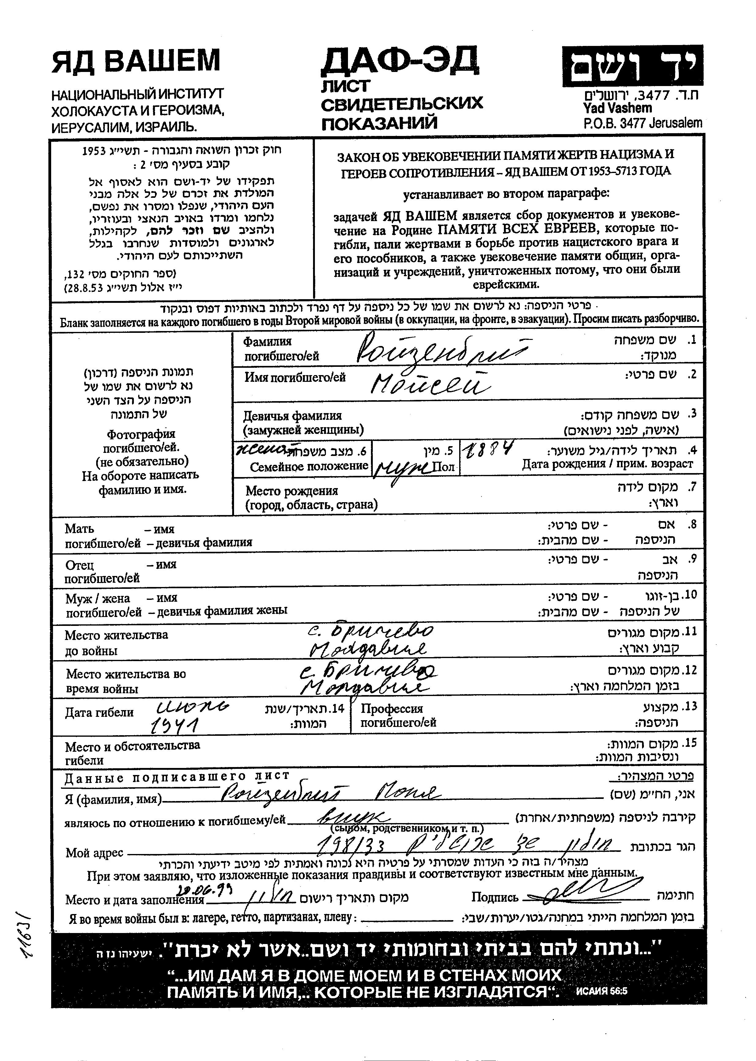 Moisei a été assassiné pendant la Shoah. Lieu de la mort: endroit inconnu en 1941.