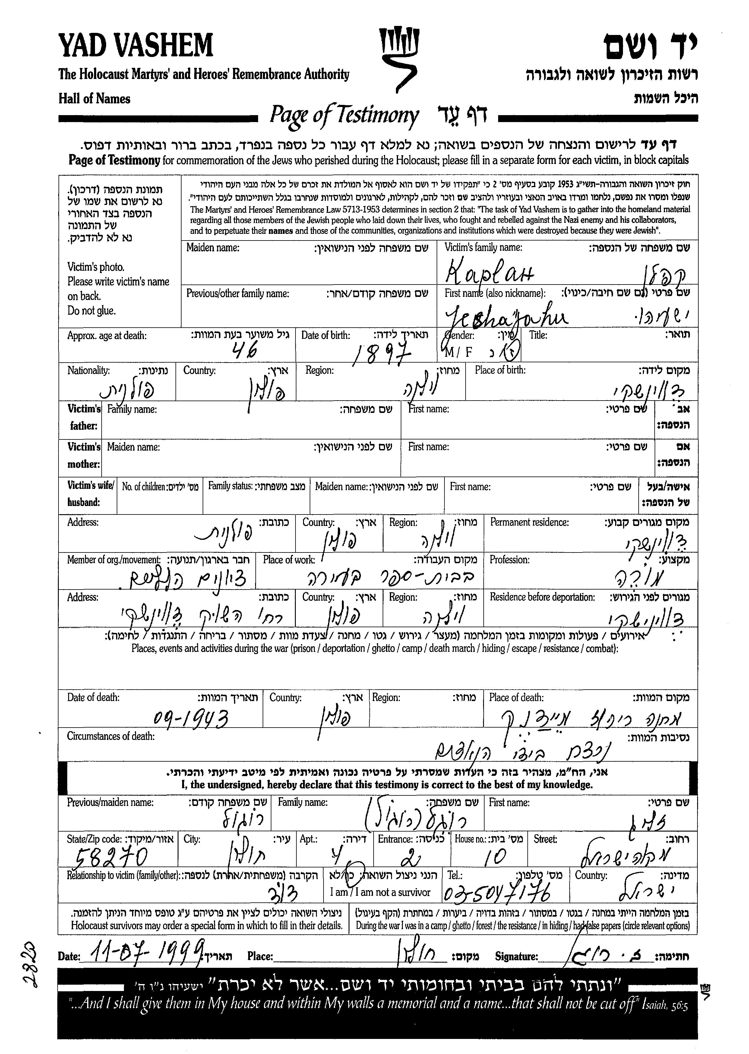 Yad Vashem - Pages of Testimony Names Memorial Collection