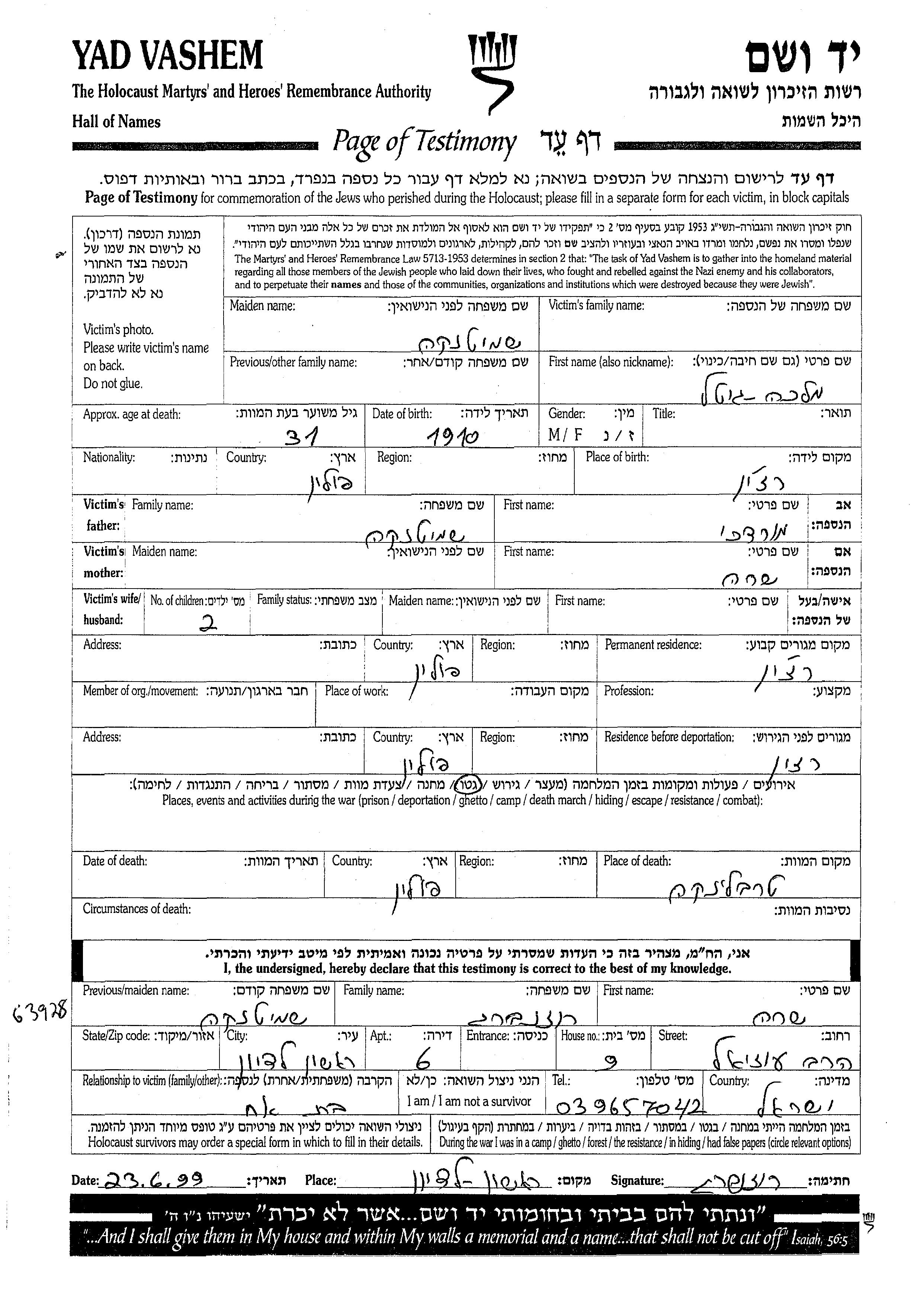 Recherche par date de la mort pendant la période de la Shoah: 1933-1945. Sélectionnez 'Exact'; dans la liste pour rechercher l'année exacte, ou sélectionner '+/- 2 ans'; ou '+/- 5 ans