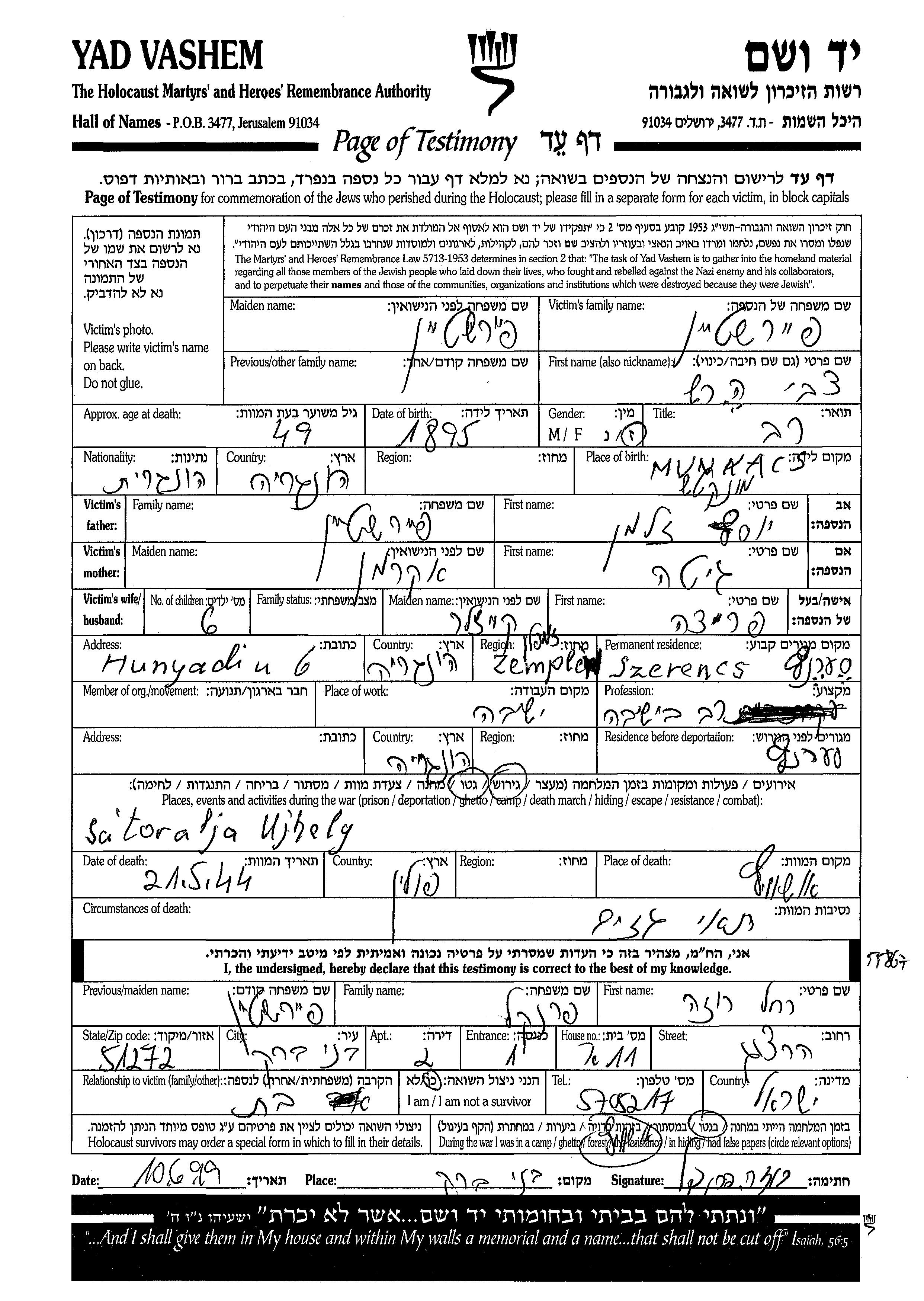 Yad Vashem - Pages of Testimony Names Memorial Collection