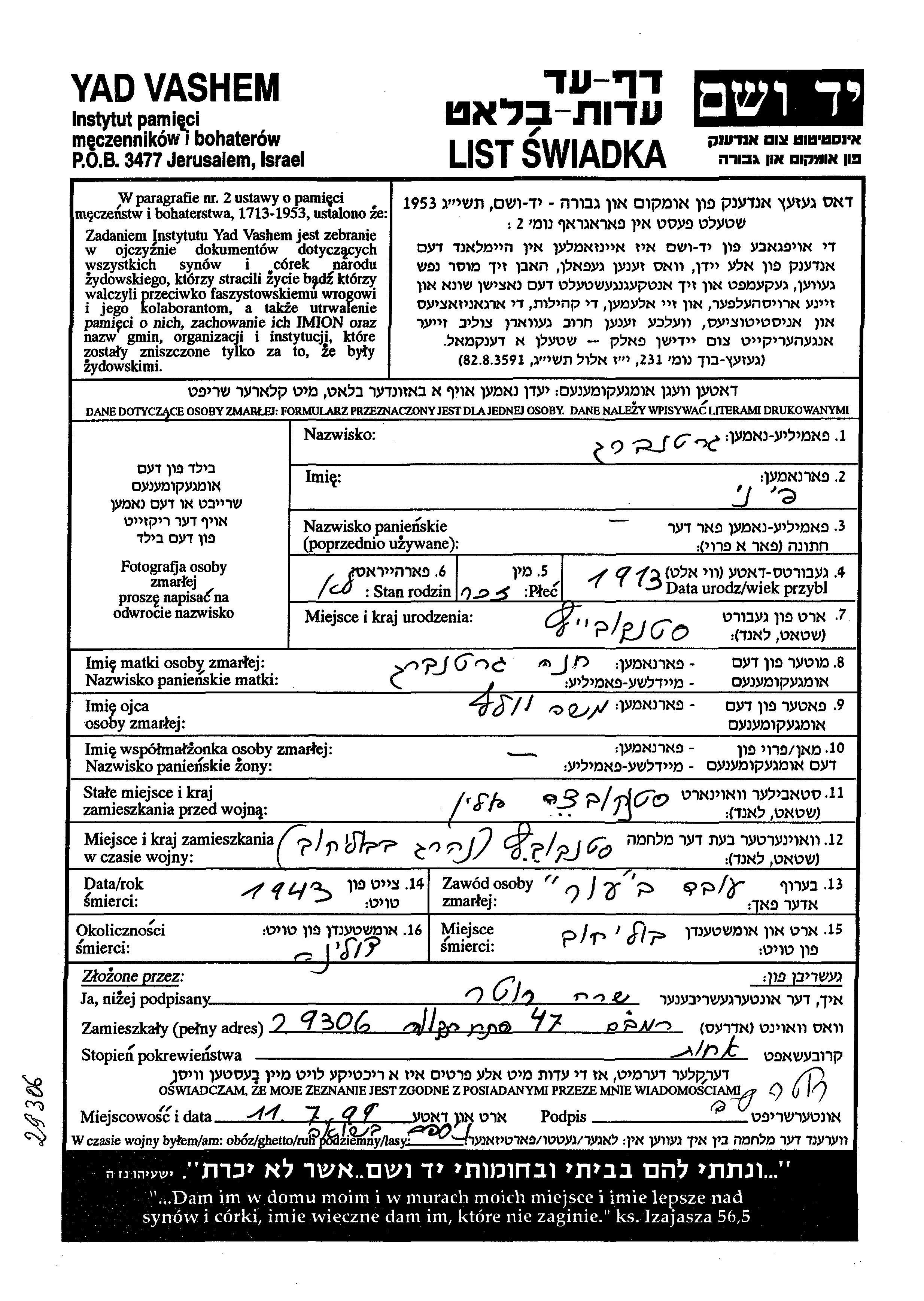 Yad Vashem - Pages of Testimony Names Memorial Collection
