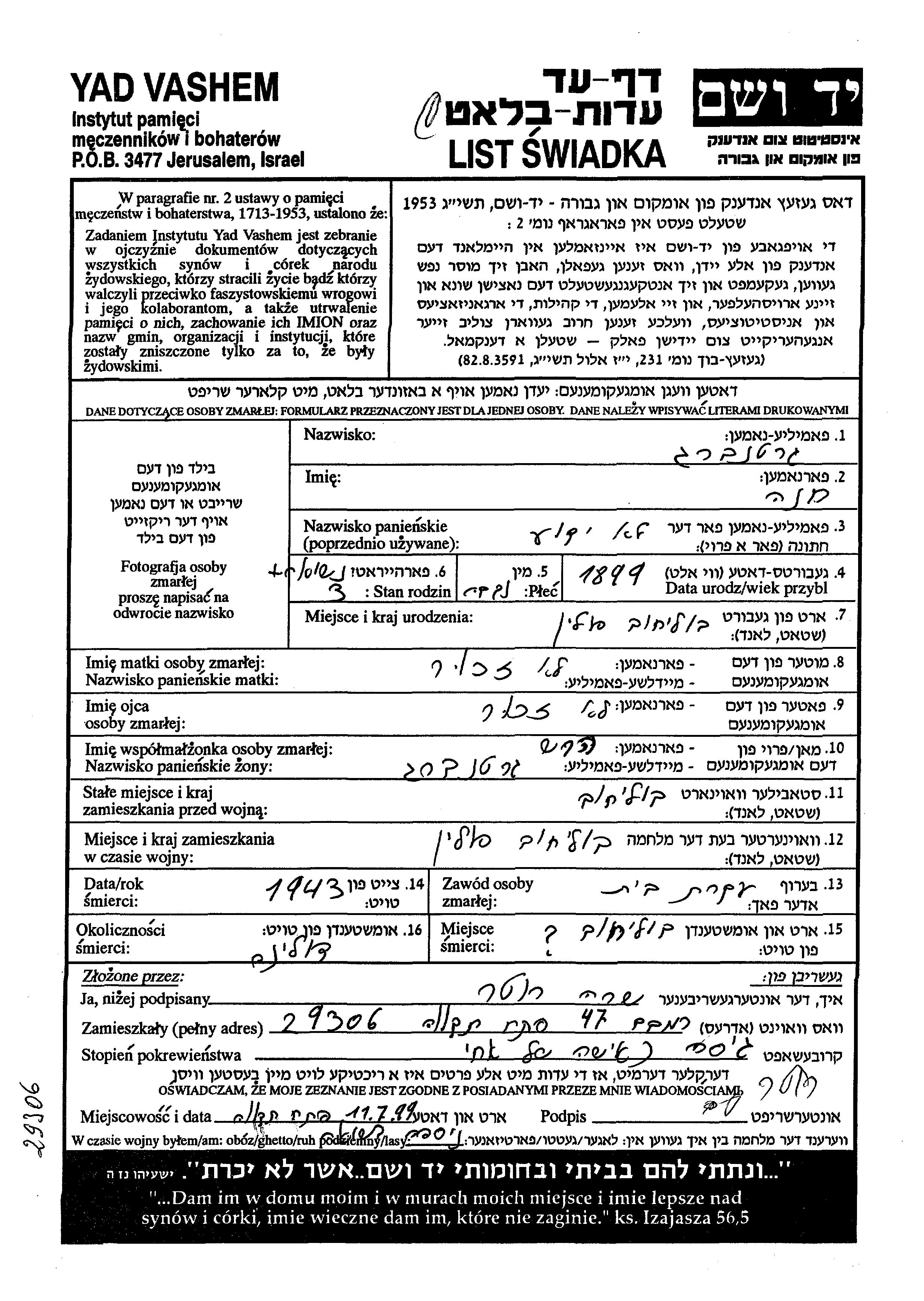 Yad Vashem - Pages of Testimony Names Memorial Collection