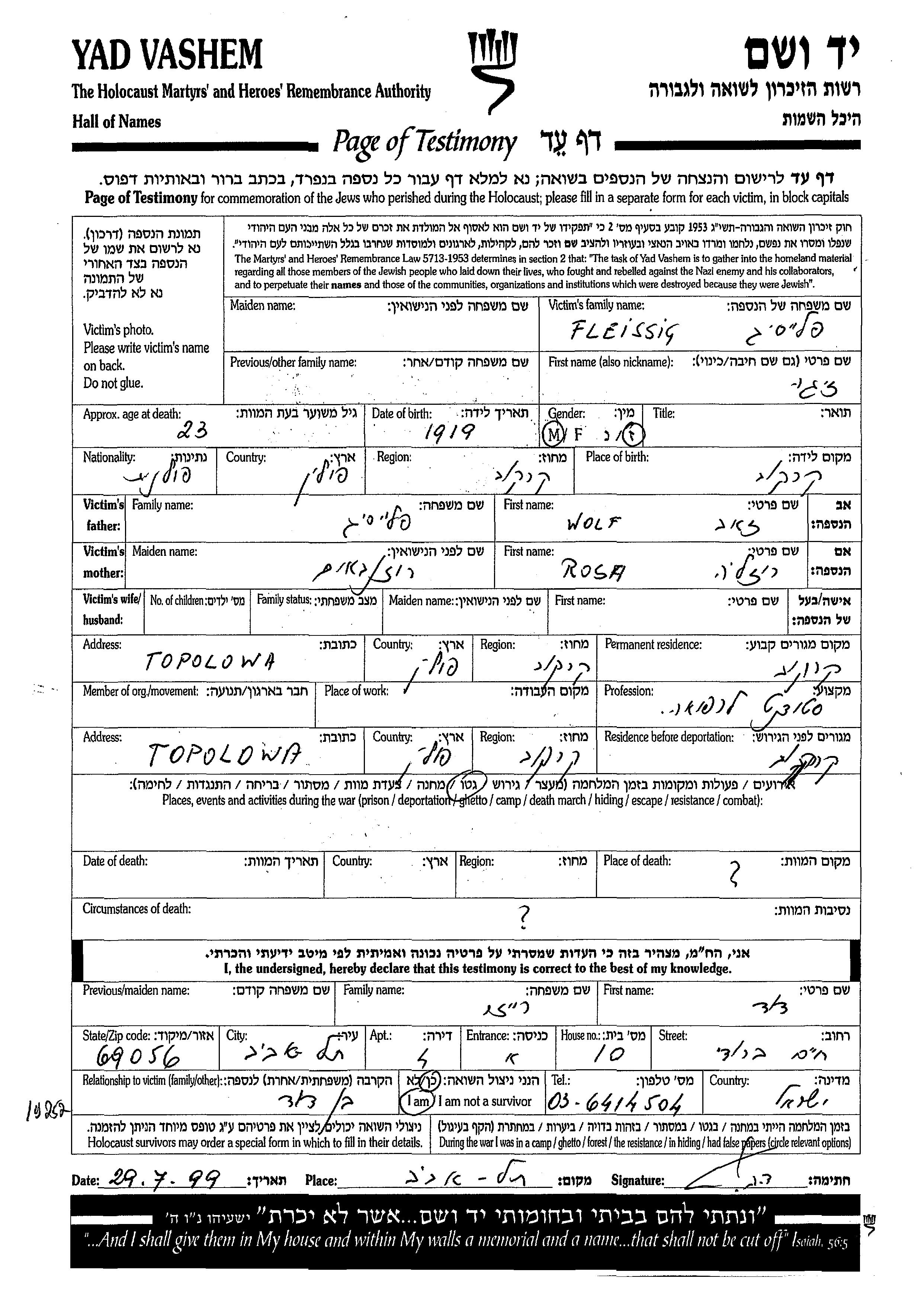 Yad Vashem - Pages of Testimony Names Memorial Collection
