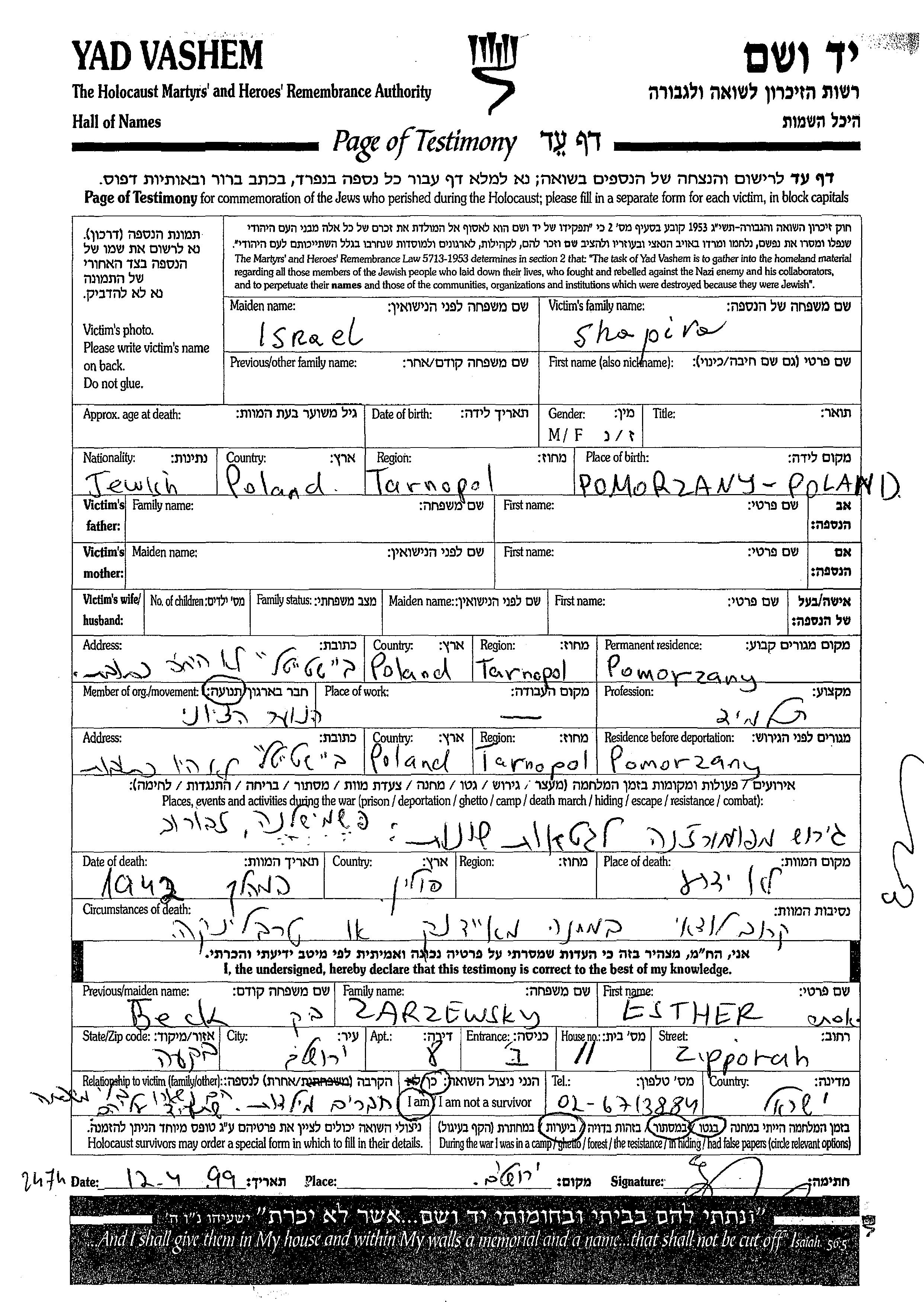 Yad Vashem - Pages of Testimony Names Memorial Collection