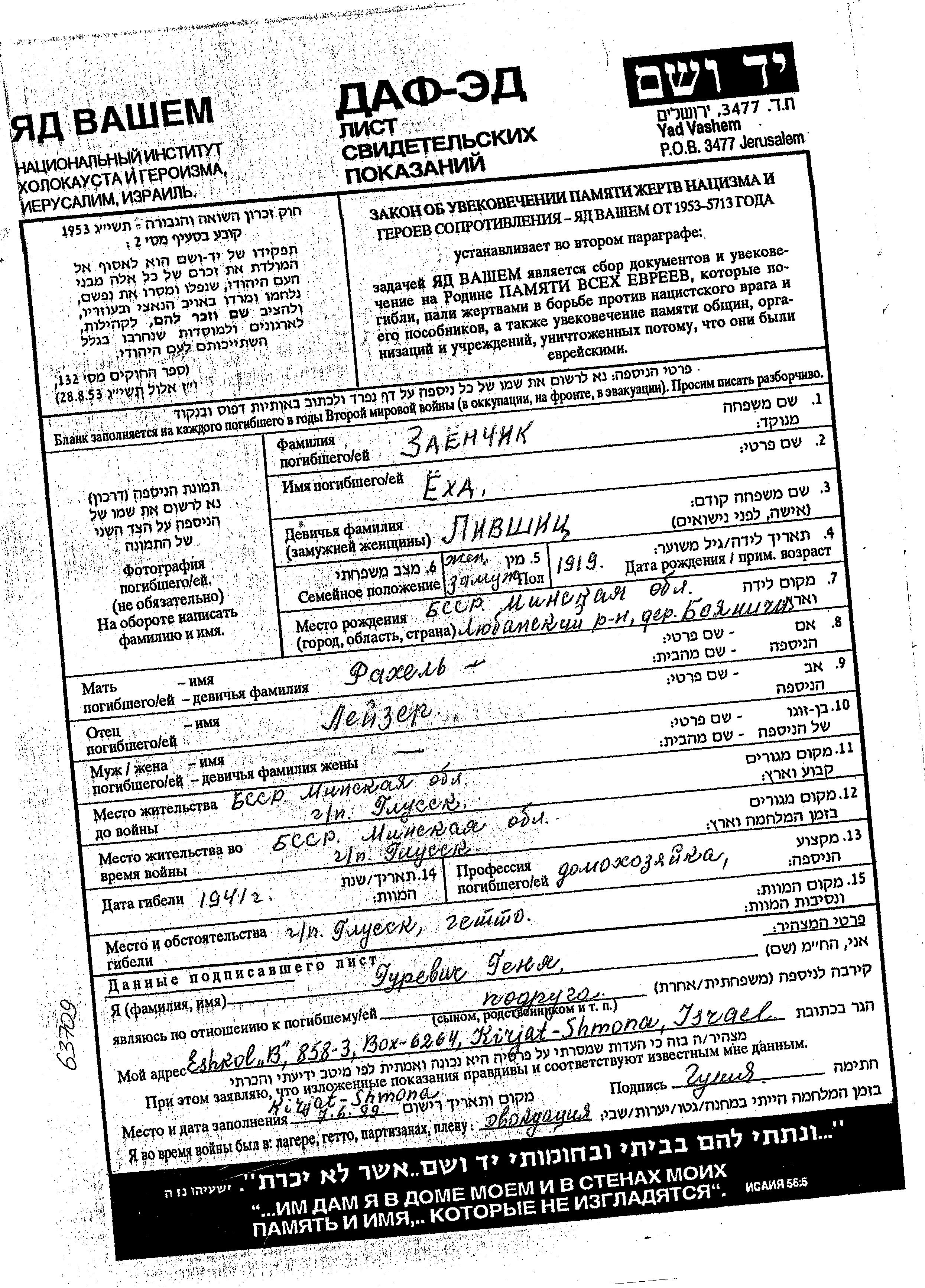 Yad Vashem - Pages of Testimony Names Memorial Collection