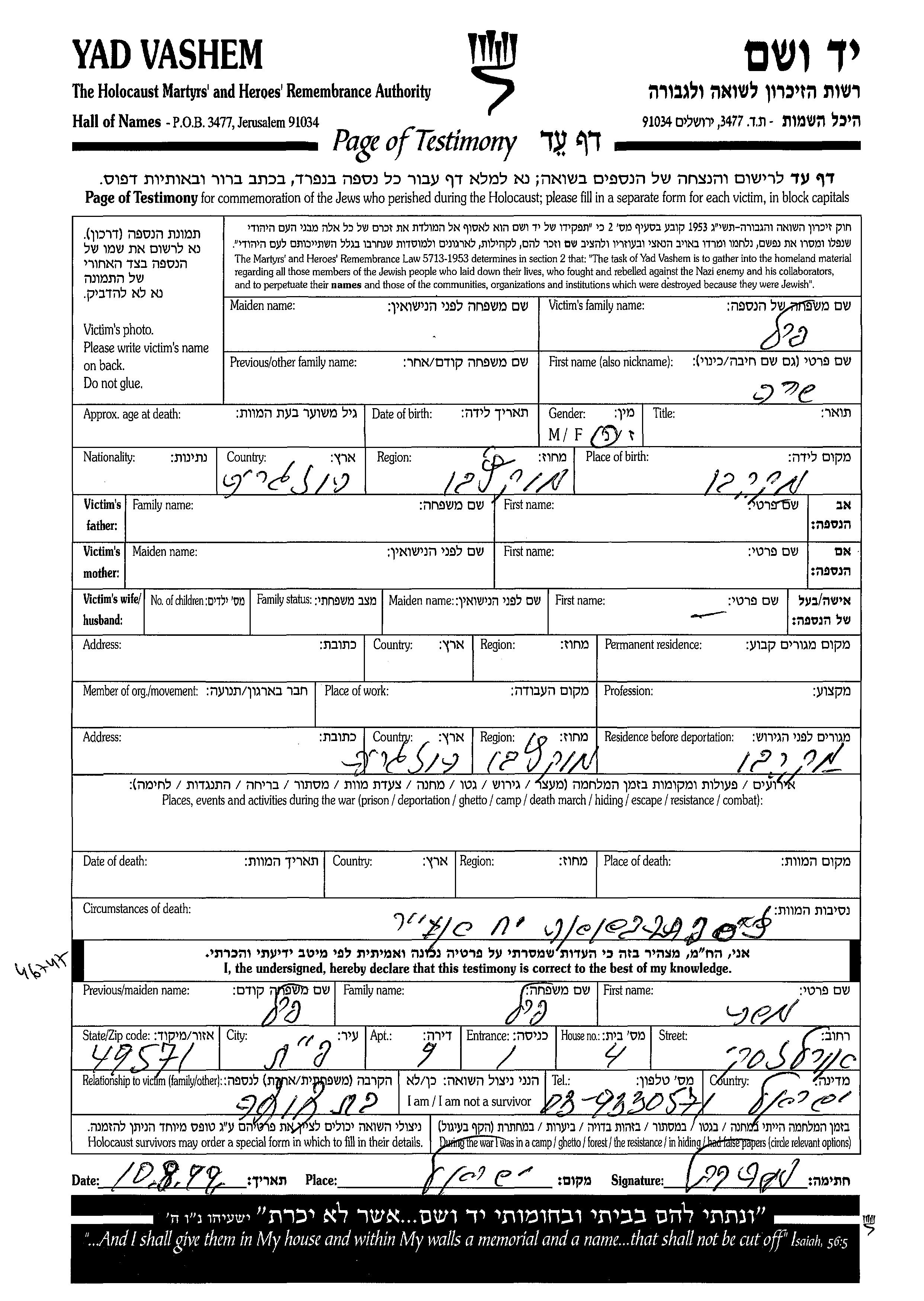 Yad Vashem - Pages of Testimony Names Memorial Collection