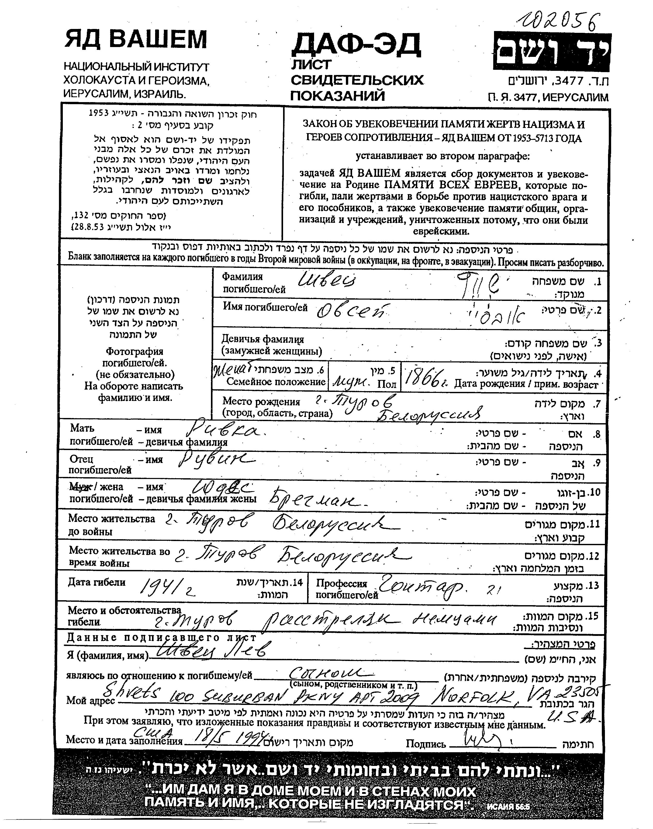 Yad Vashem - Pages of Testimony Names Memorial Collection
