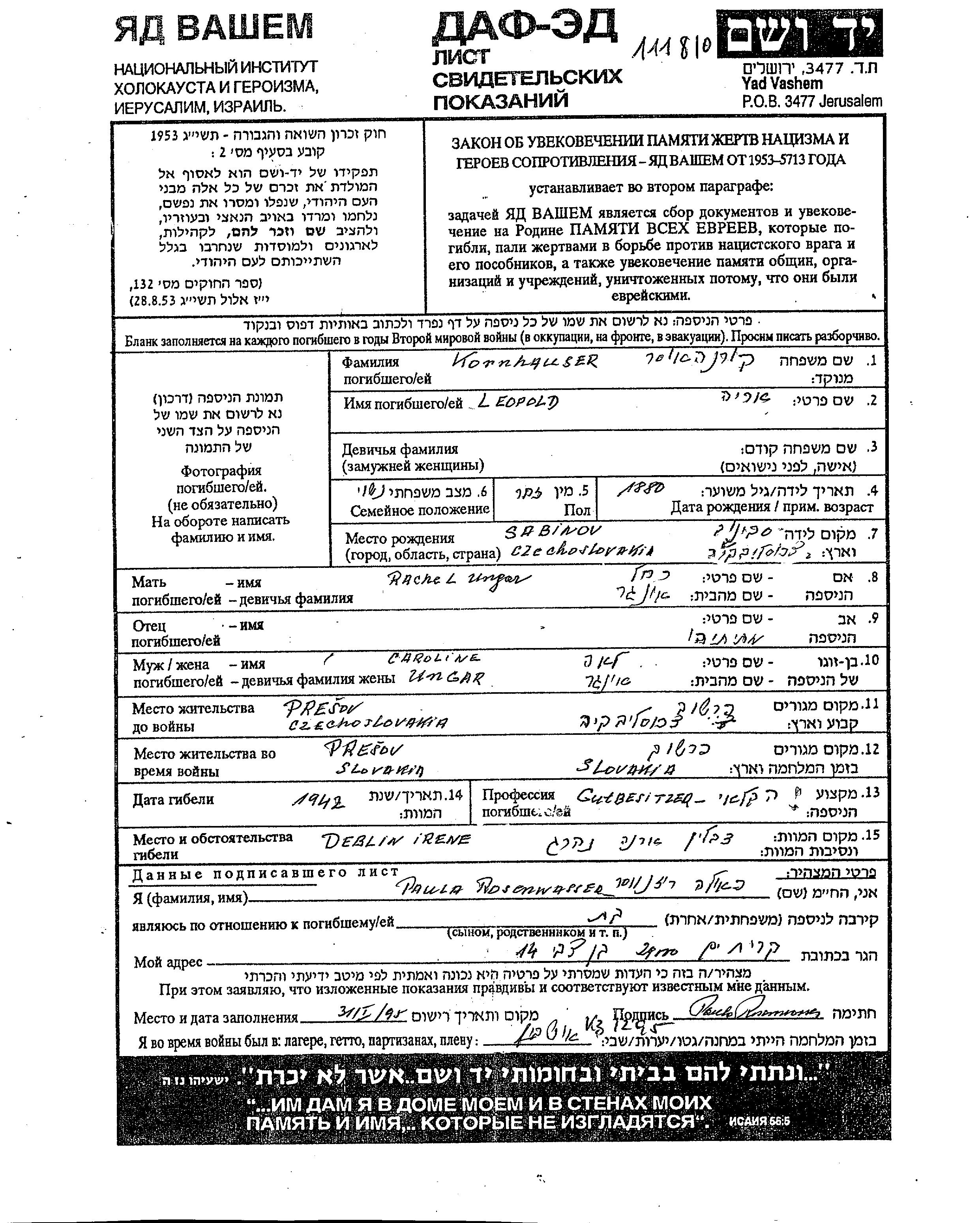 Yad Vashem - Pages of Testimony Names Memorial Collection