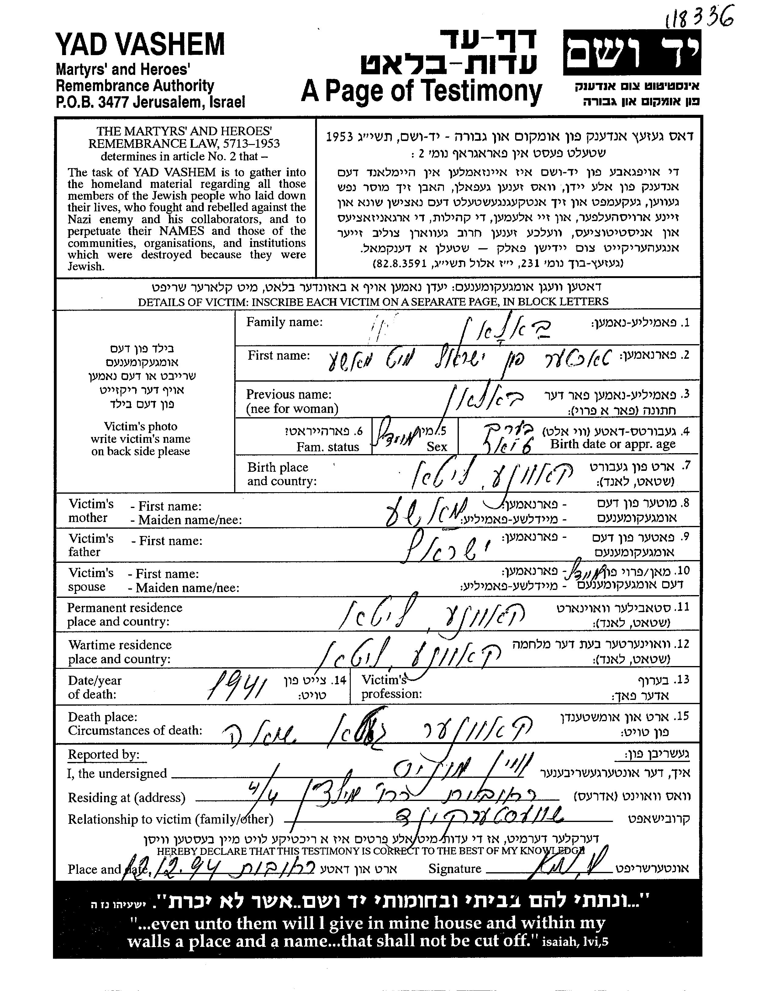 Yad Vashem - Pages of Testimony Names Memorial Collection