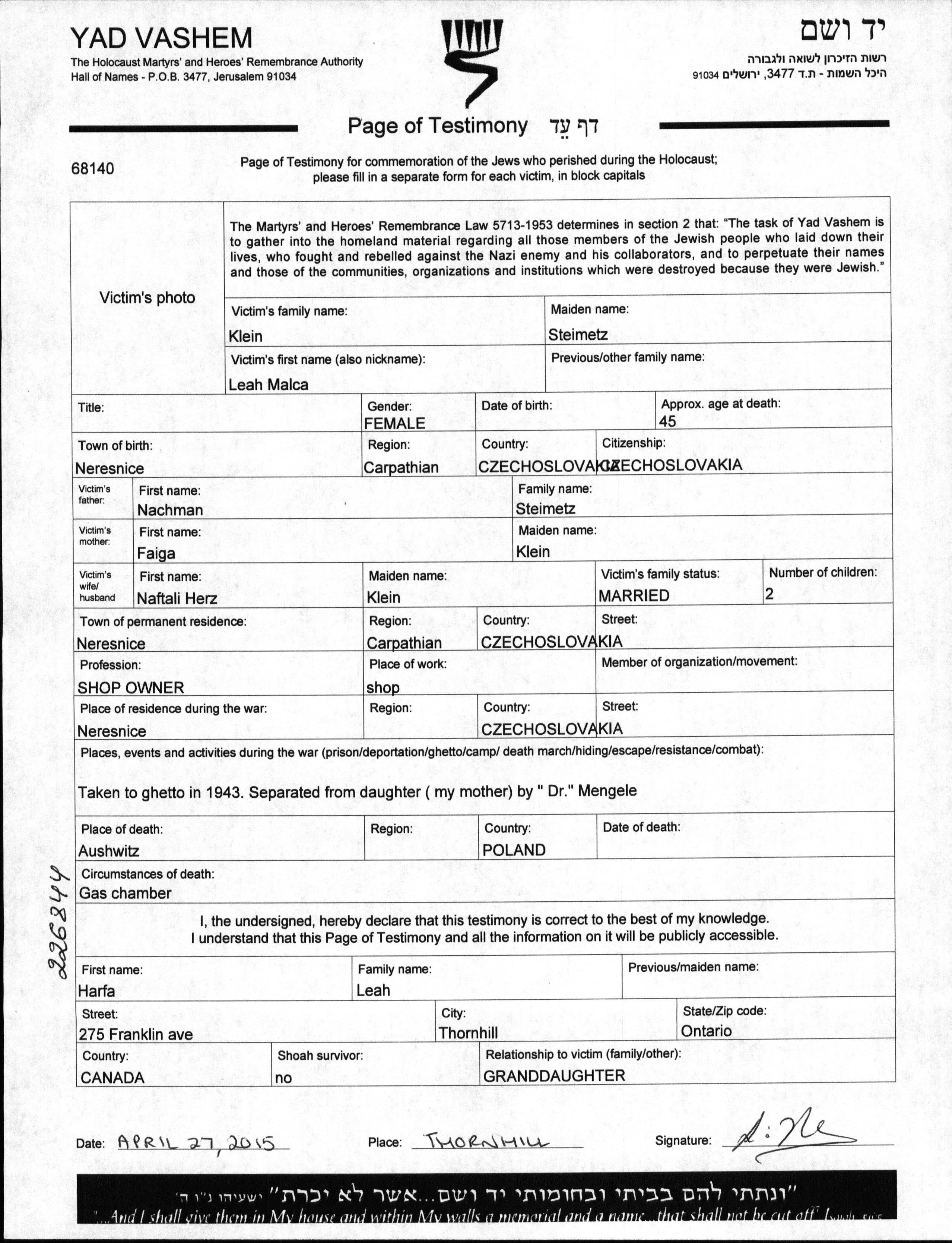 Recherche par nom du dépositeur de la Feuille de témoignage. Cette recherché indique aussi les noms de jeunes filles.