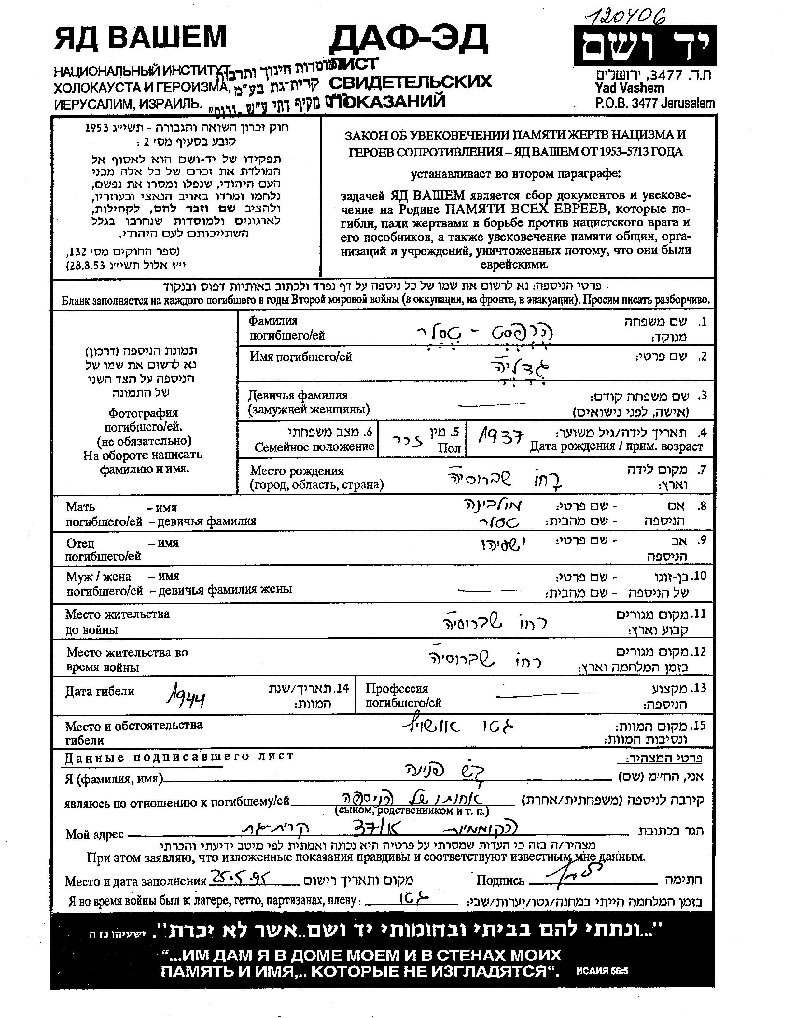 Yad Vashem - Pages of Testimony Names Memorial Collection
